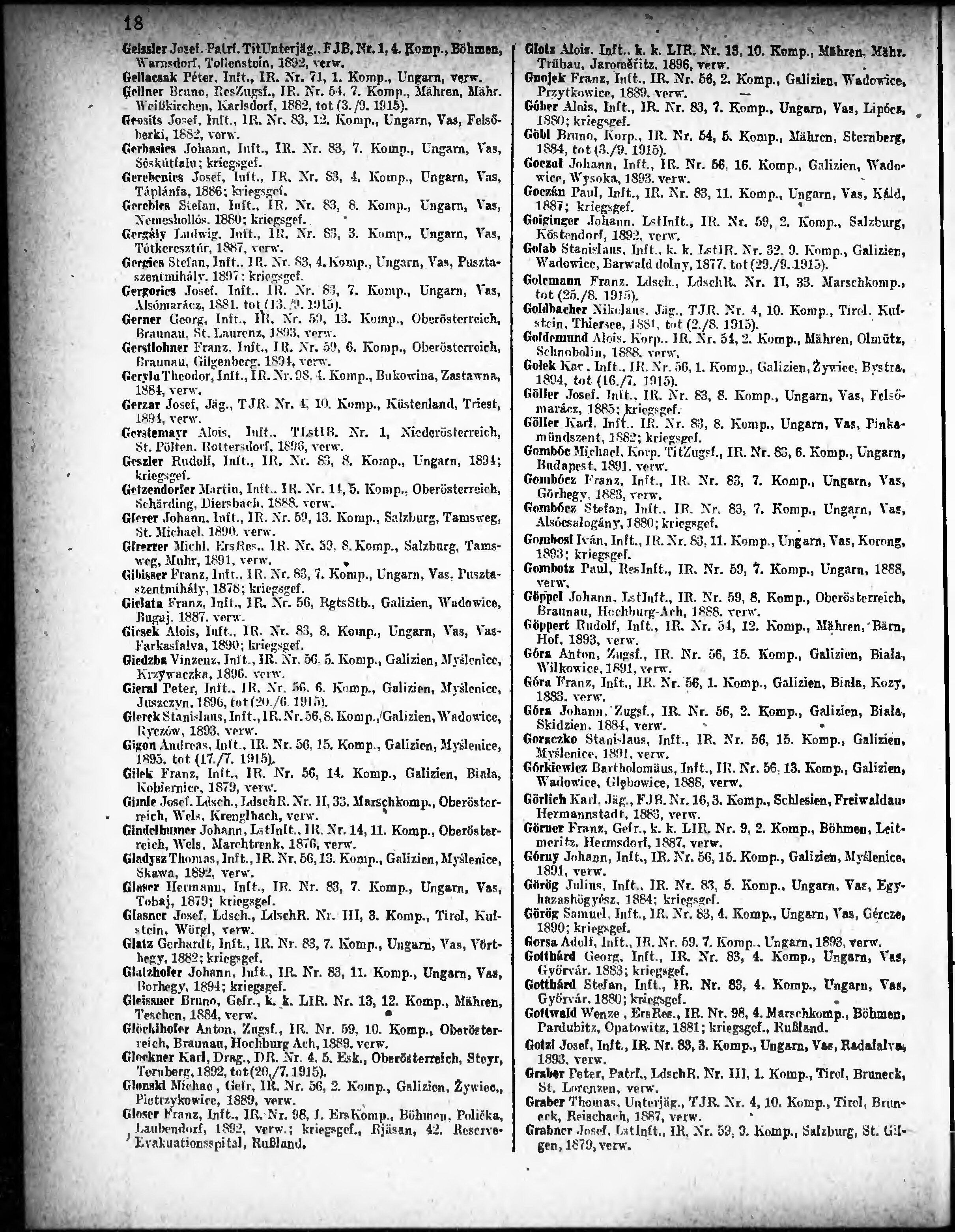 Verlustliste ausgegeben am