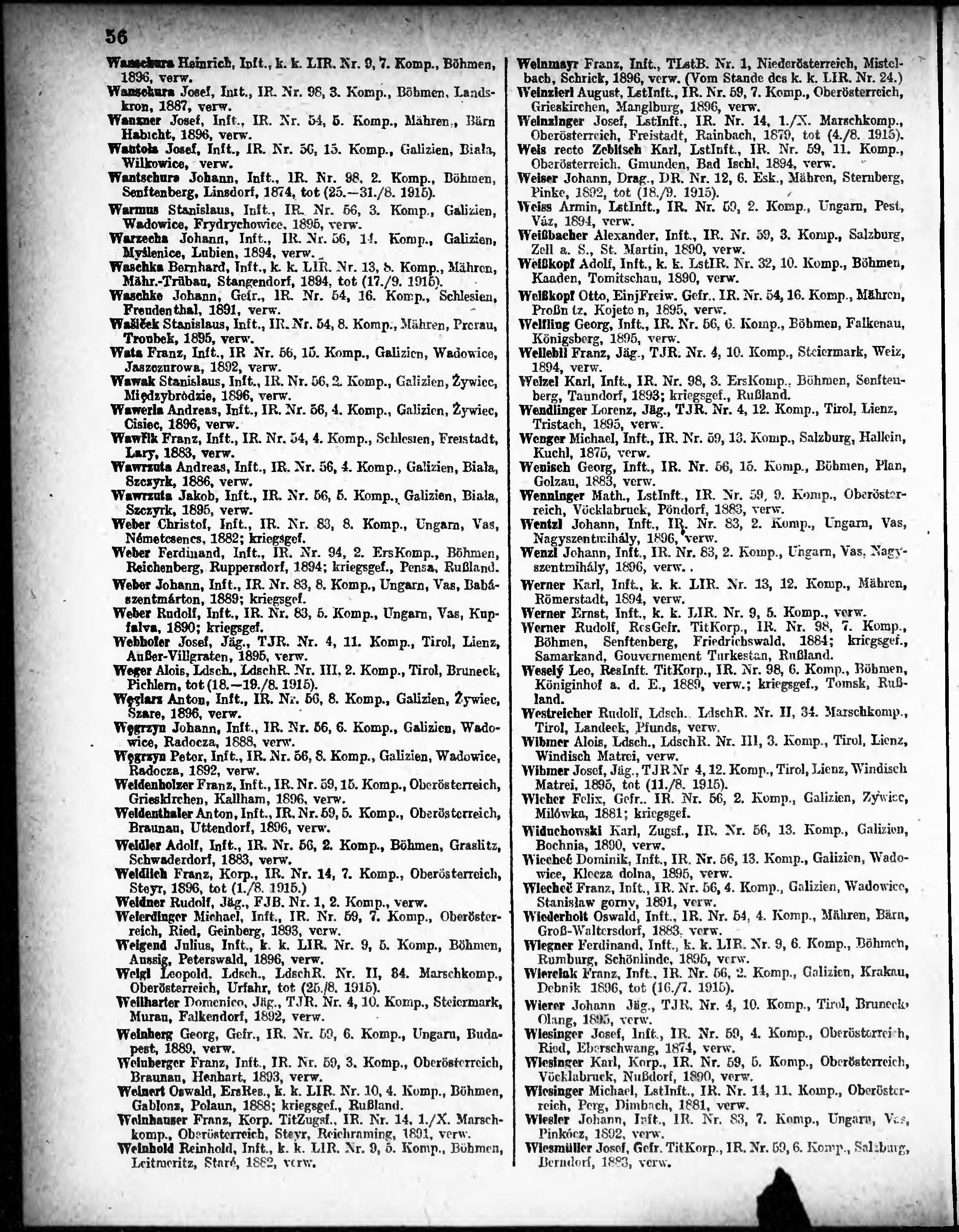 Verlustliste ausgegeben am