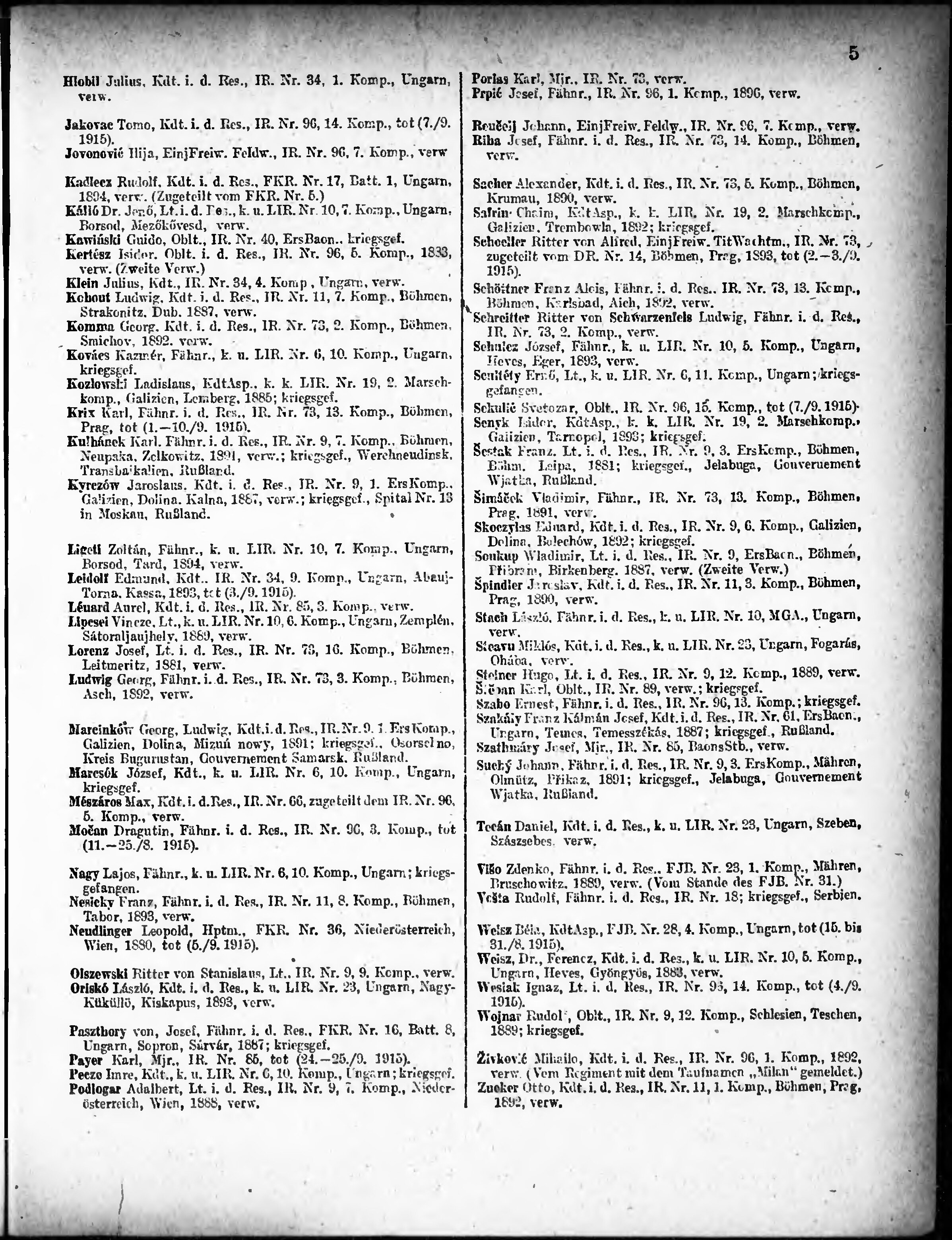 Verlustliste ausgegeben am
