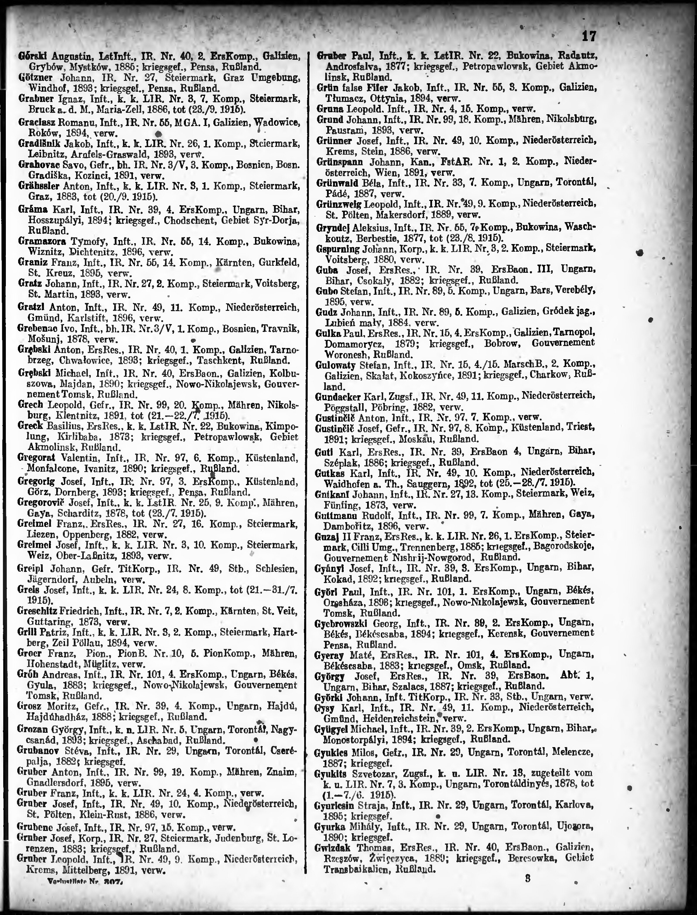Verlustliste ausgegeben am