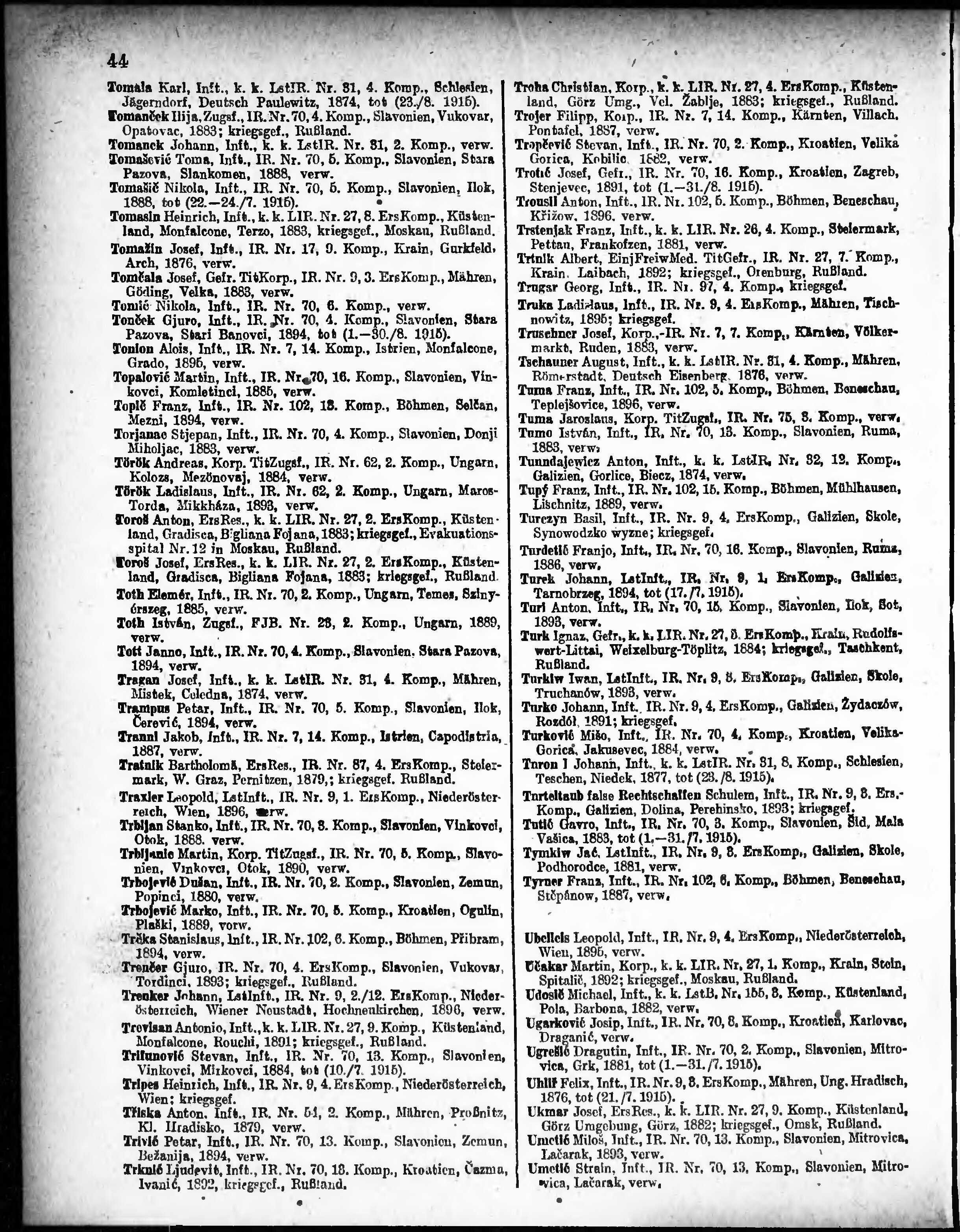 Verlustliste ausgegeben am