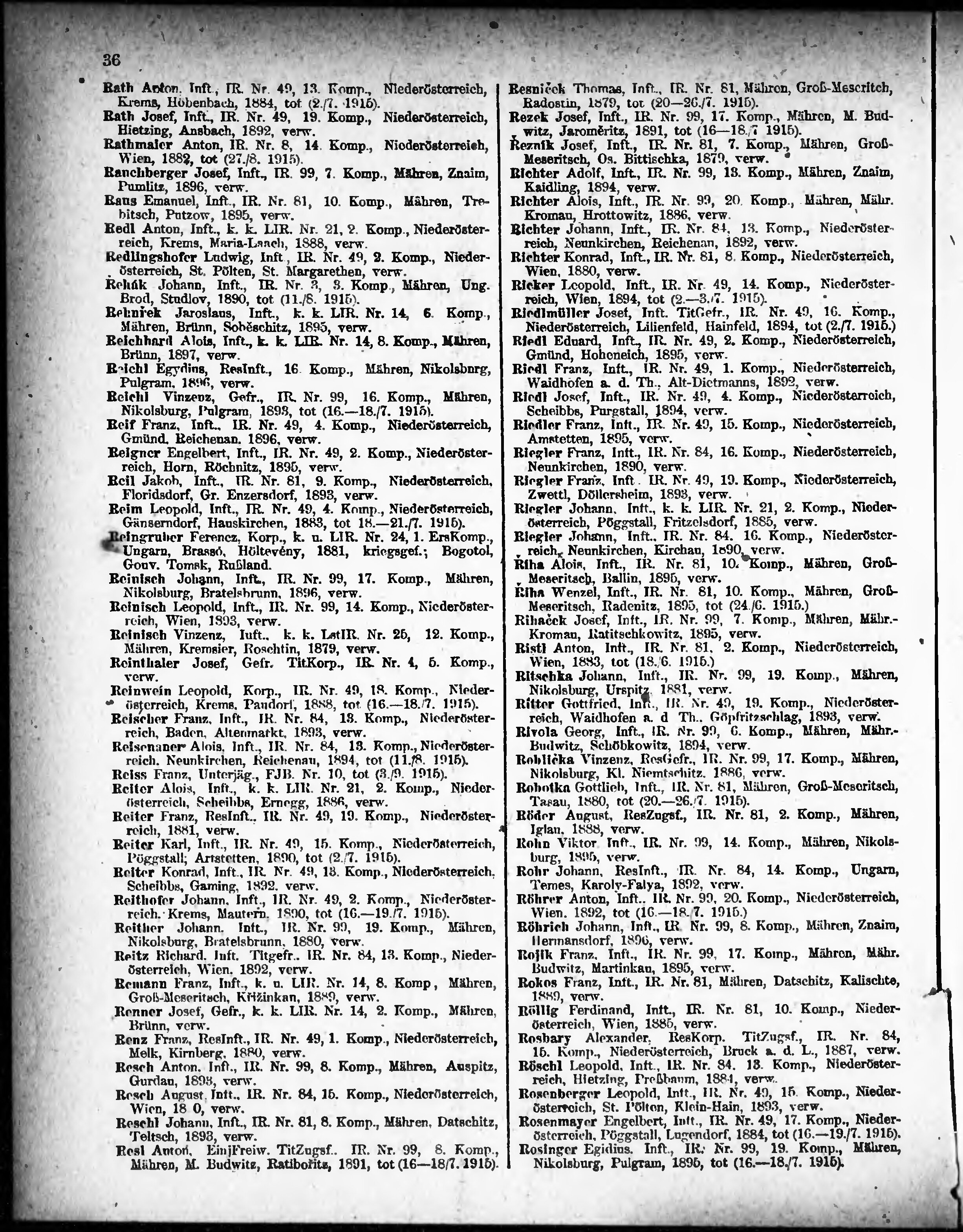 Verlustliste ausgegeben am