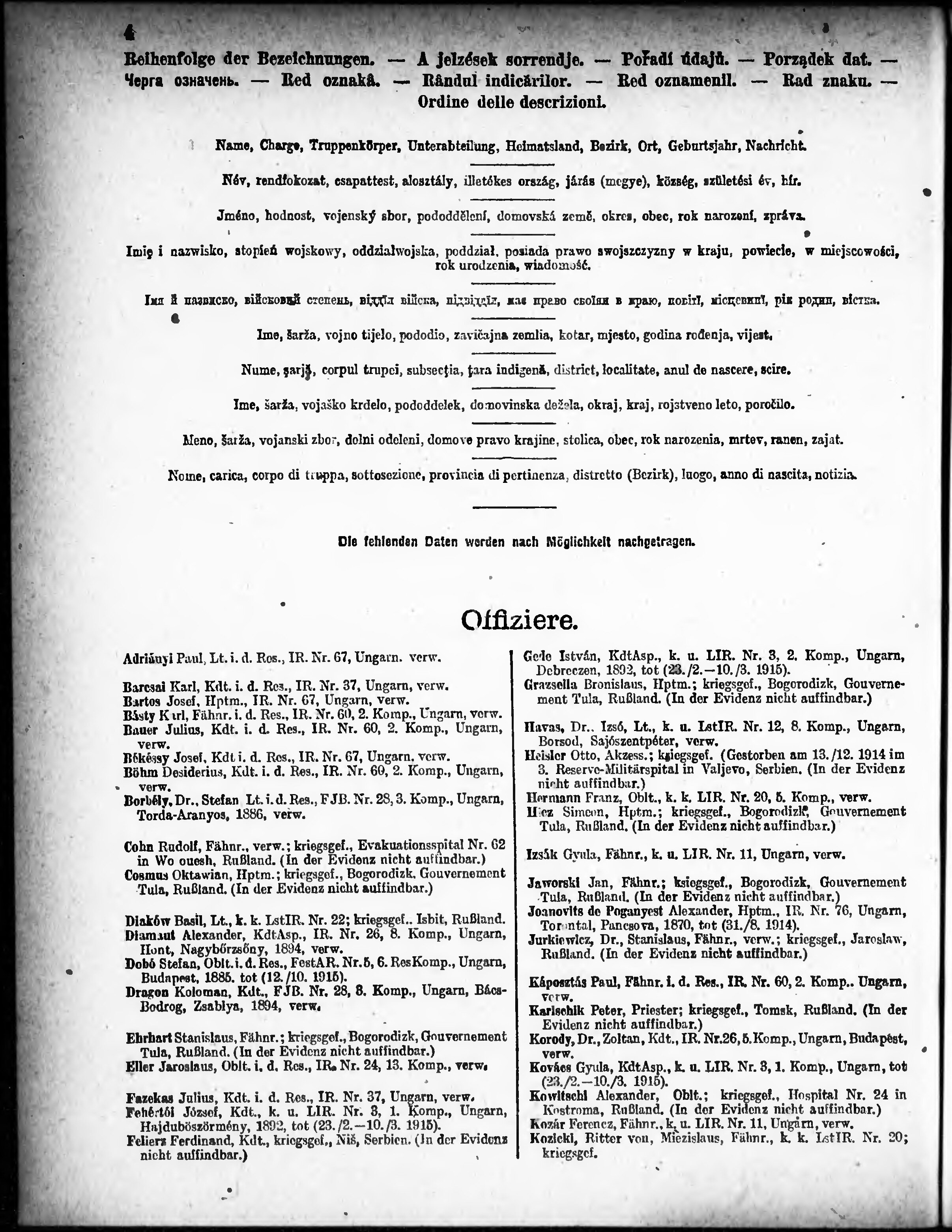 Verlustliste ausgegeben am