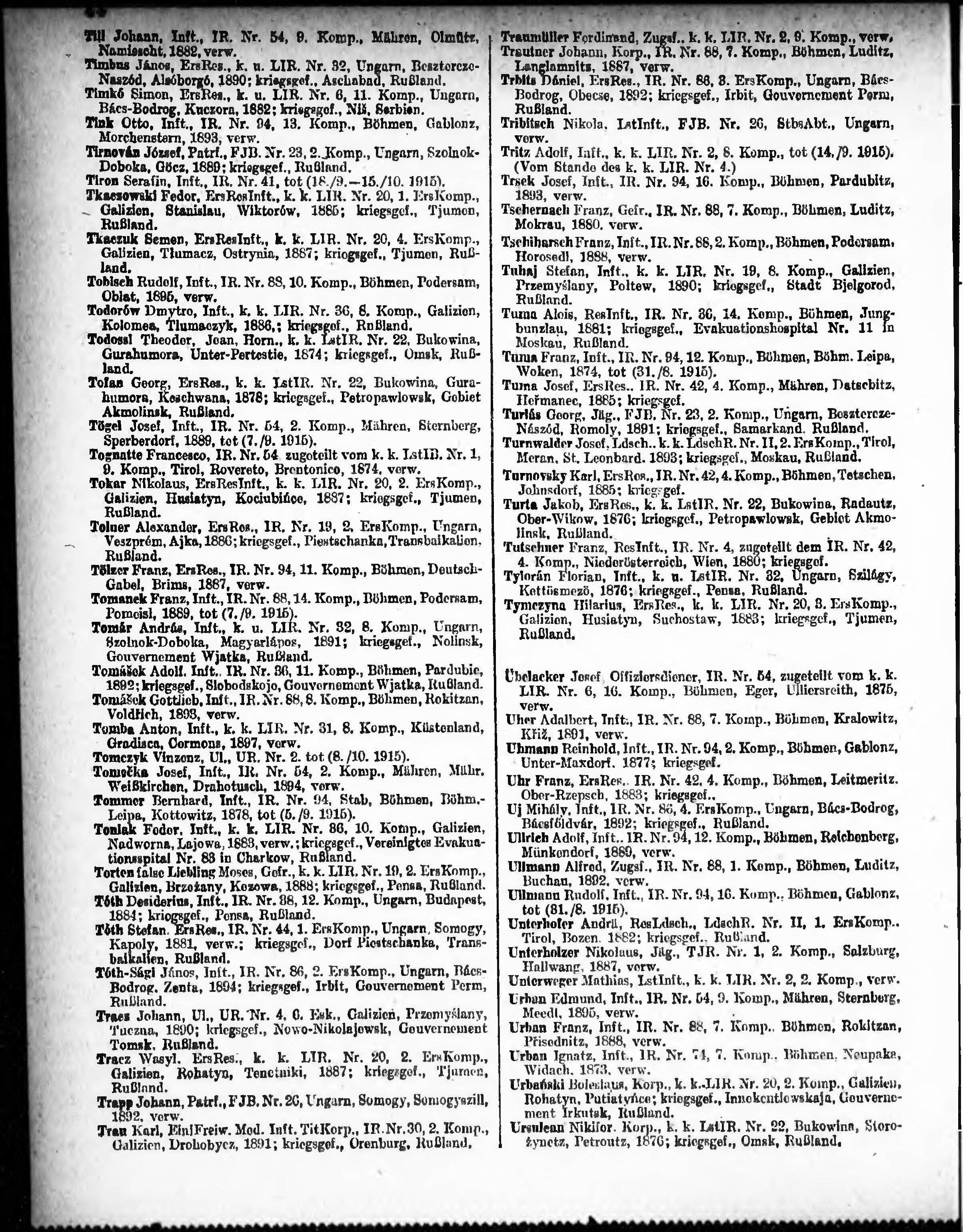 Verlustliste ausgegeben am
