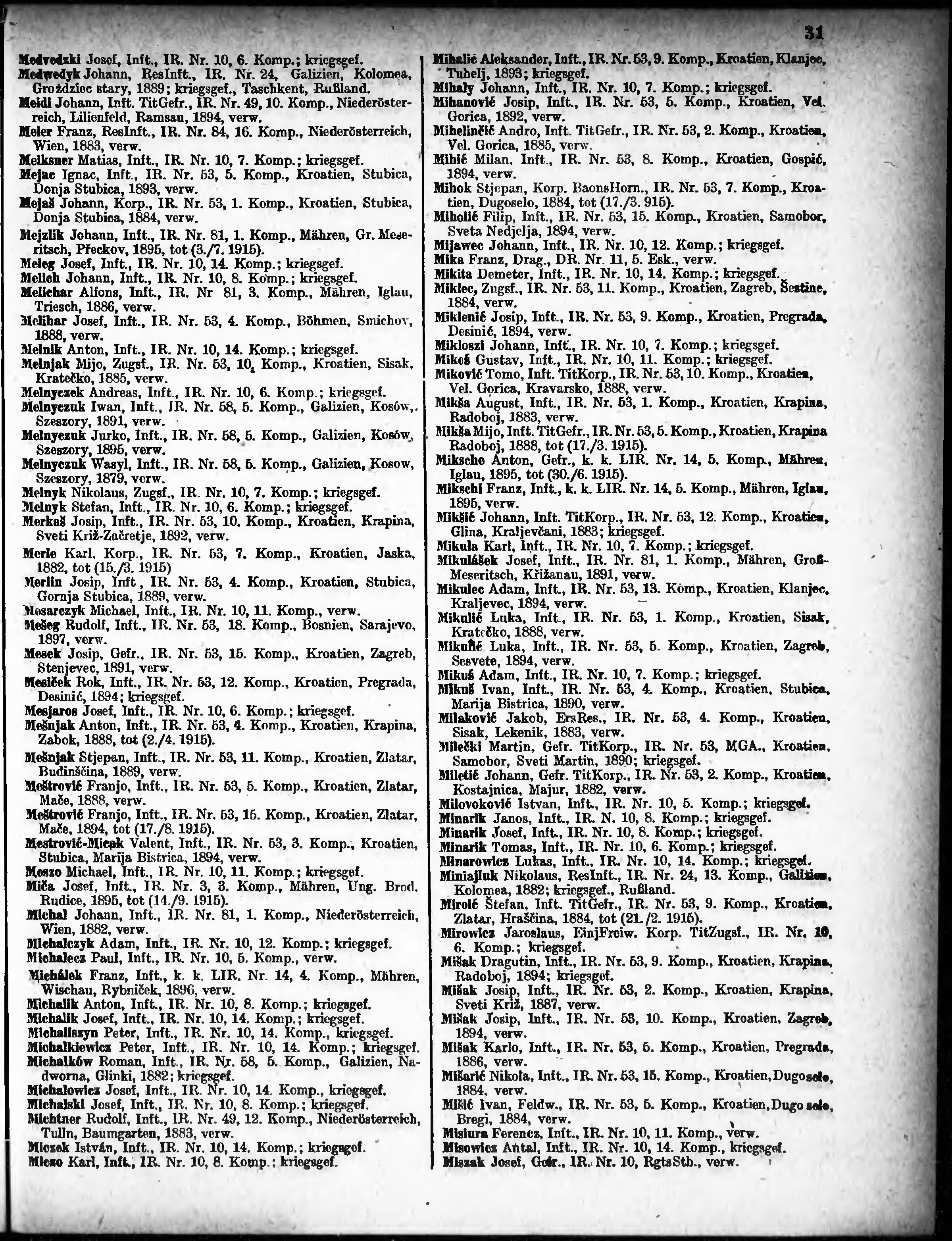 Verlustliste ausgegeben am