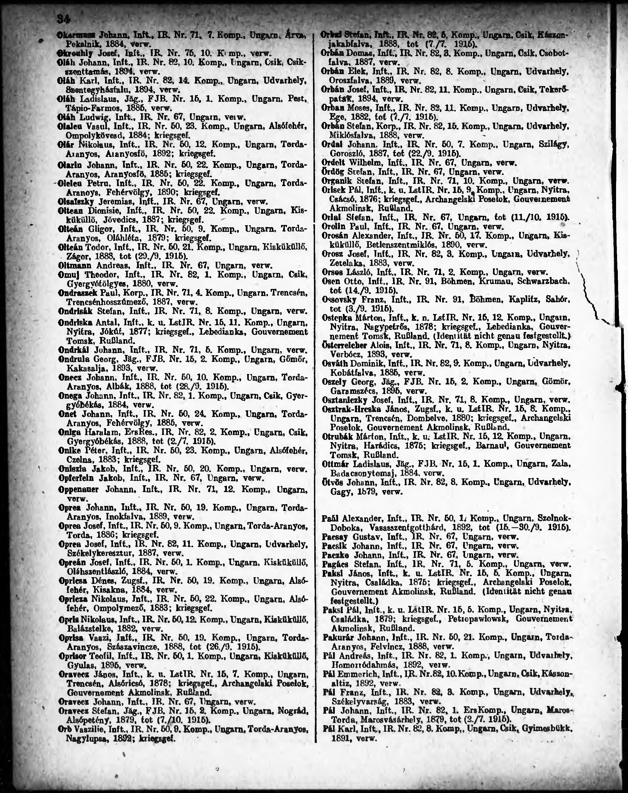 Verlustliste ausgegeben am