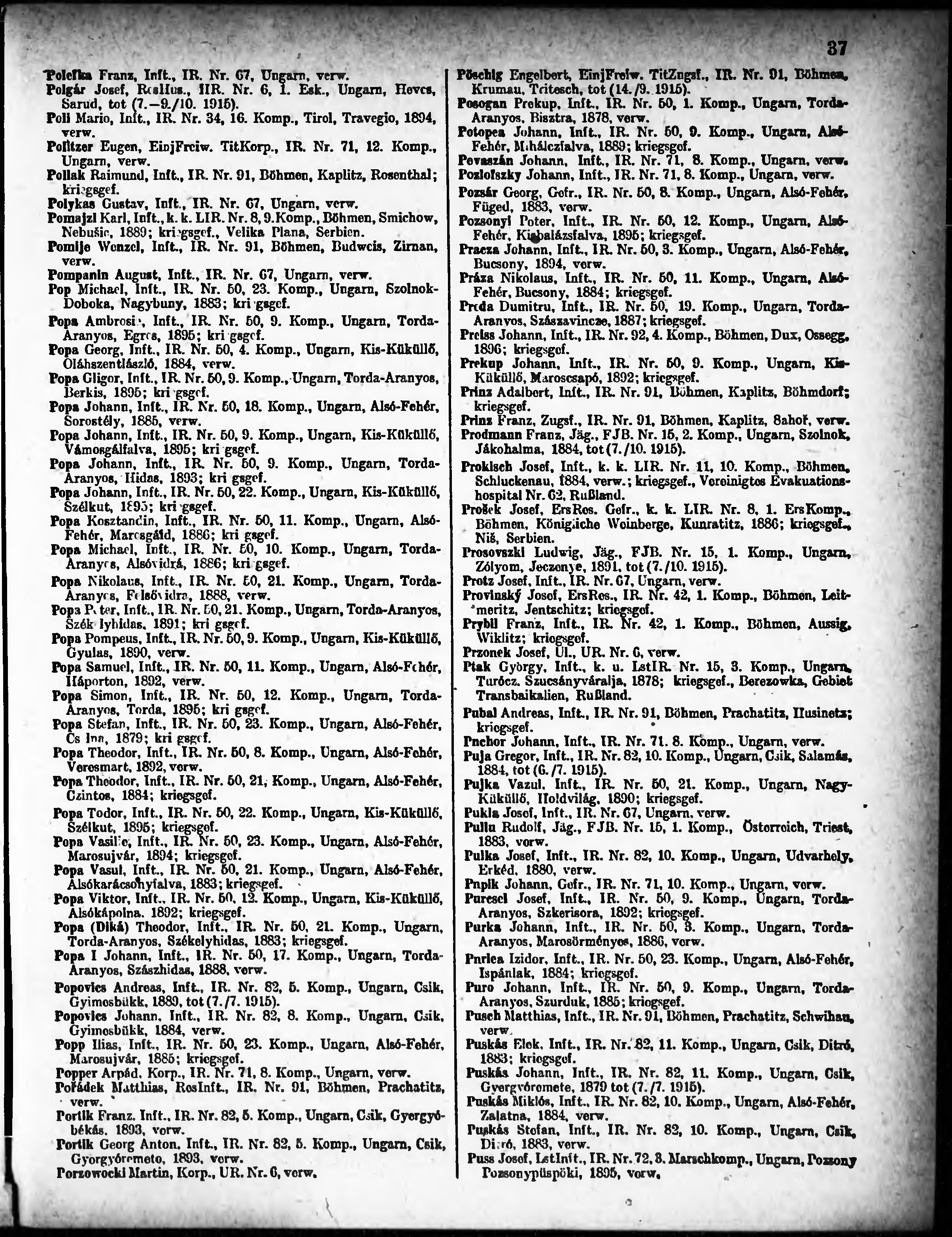 Verlustliste ausgegeben am