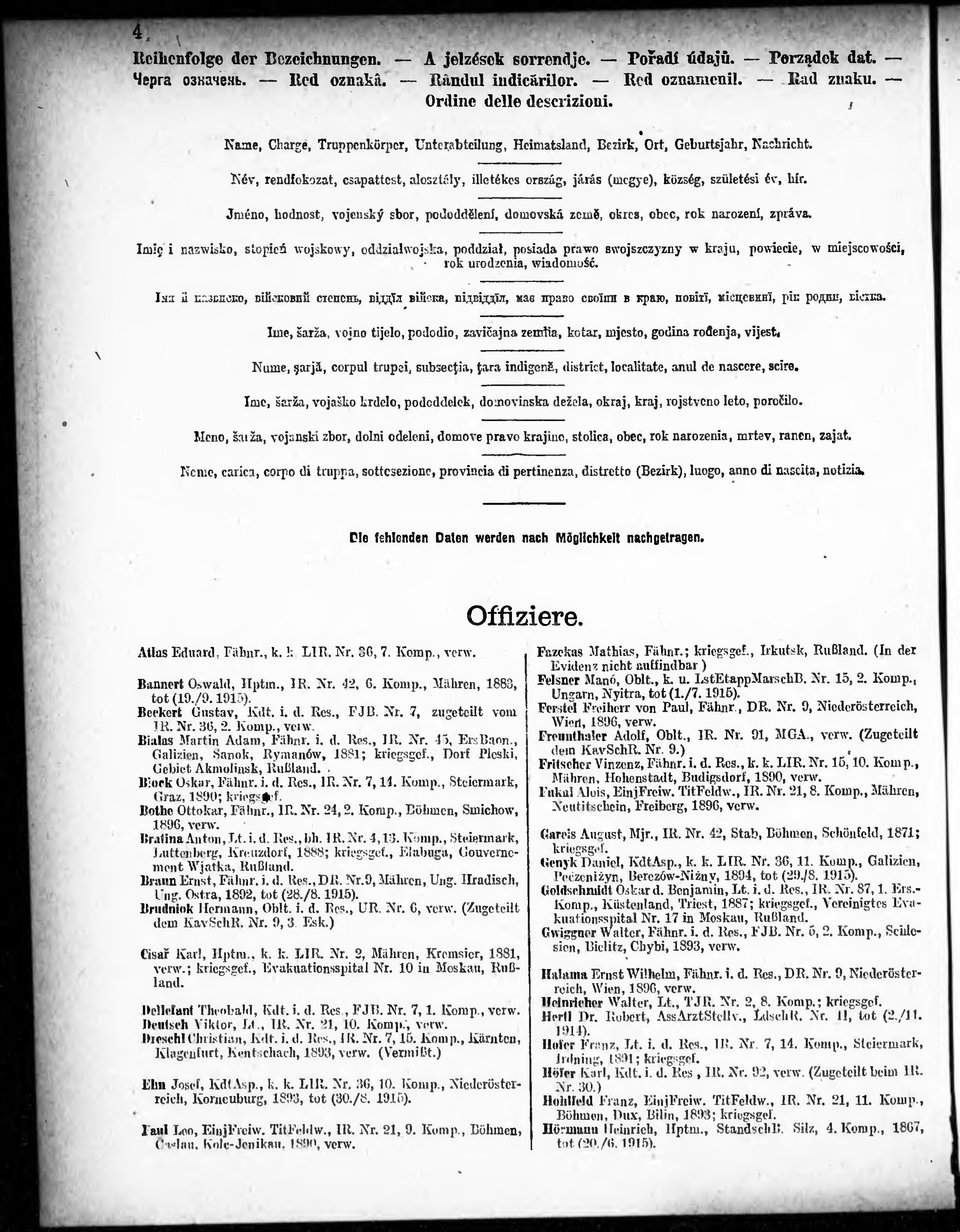Verlustliste ausgegeben am