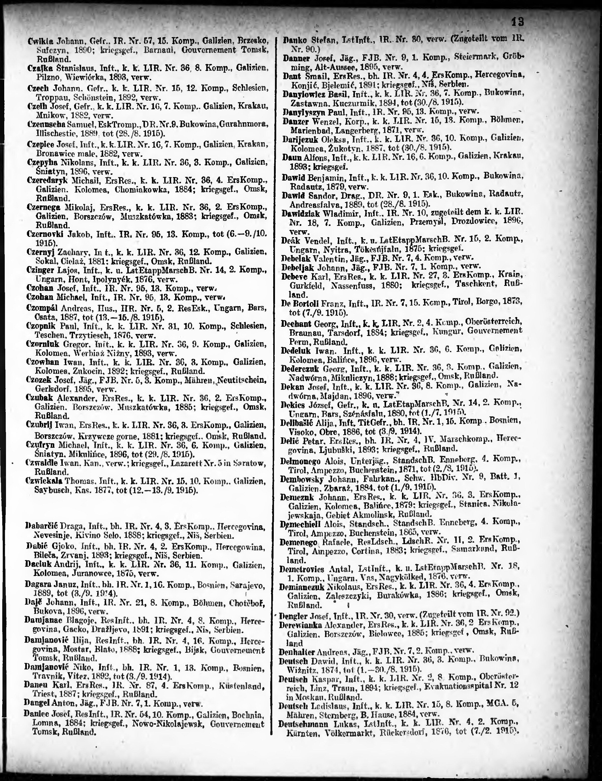 Verlustliste ausgegeben am