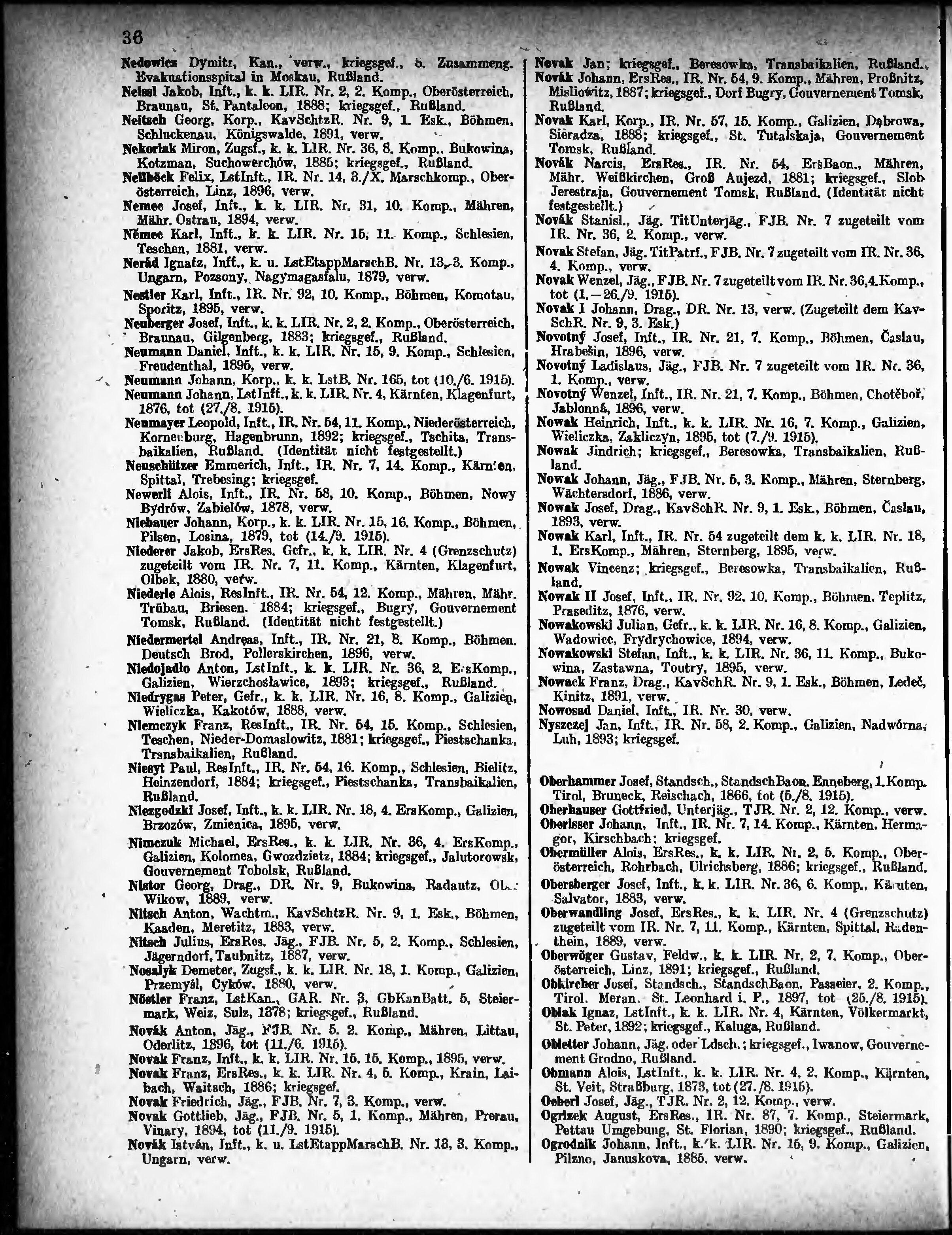 Verlustliste ausgegeben am