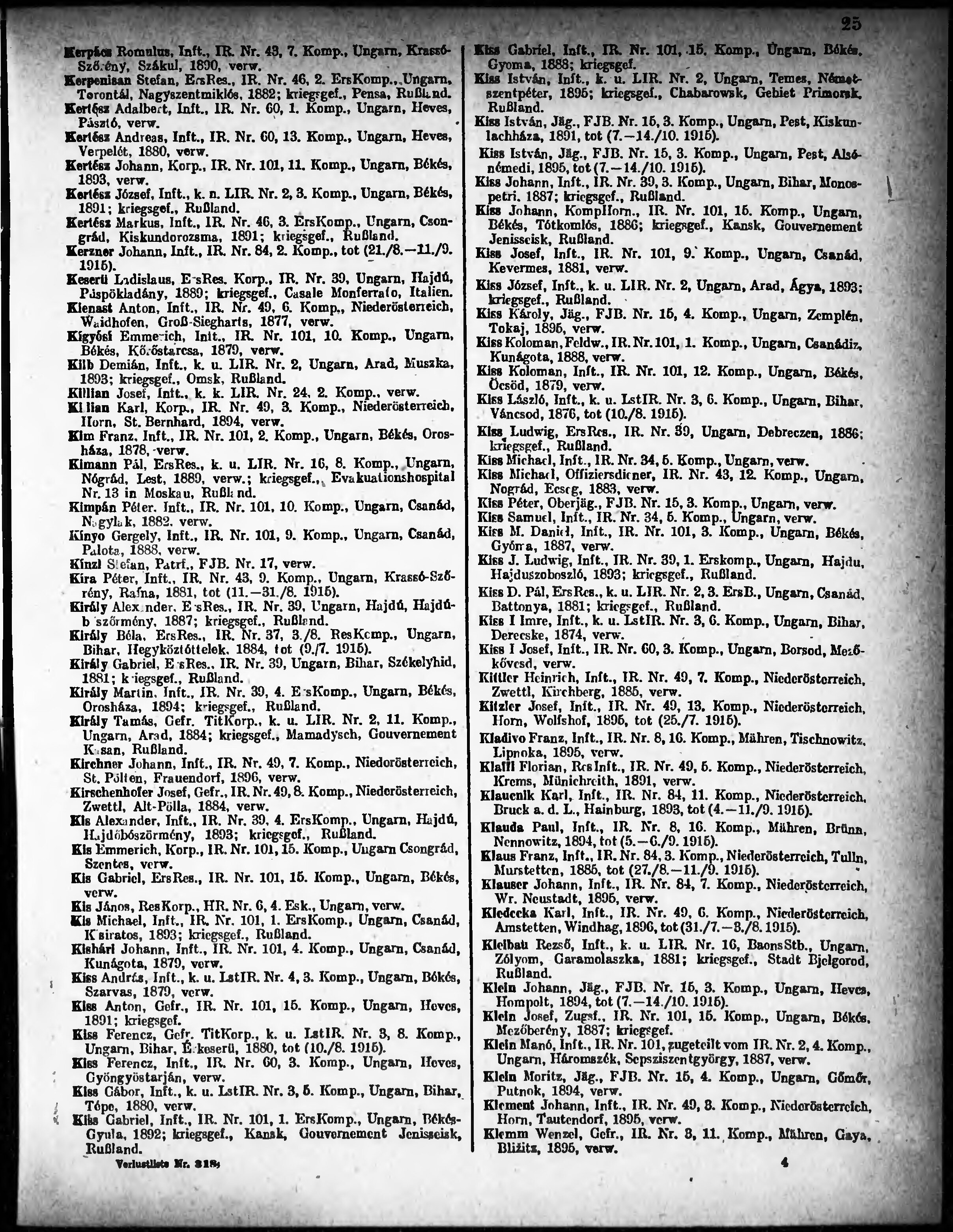 Verlustliste ausgegeben am