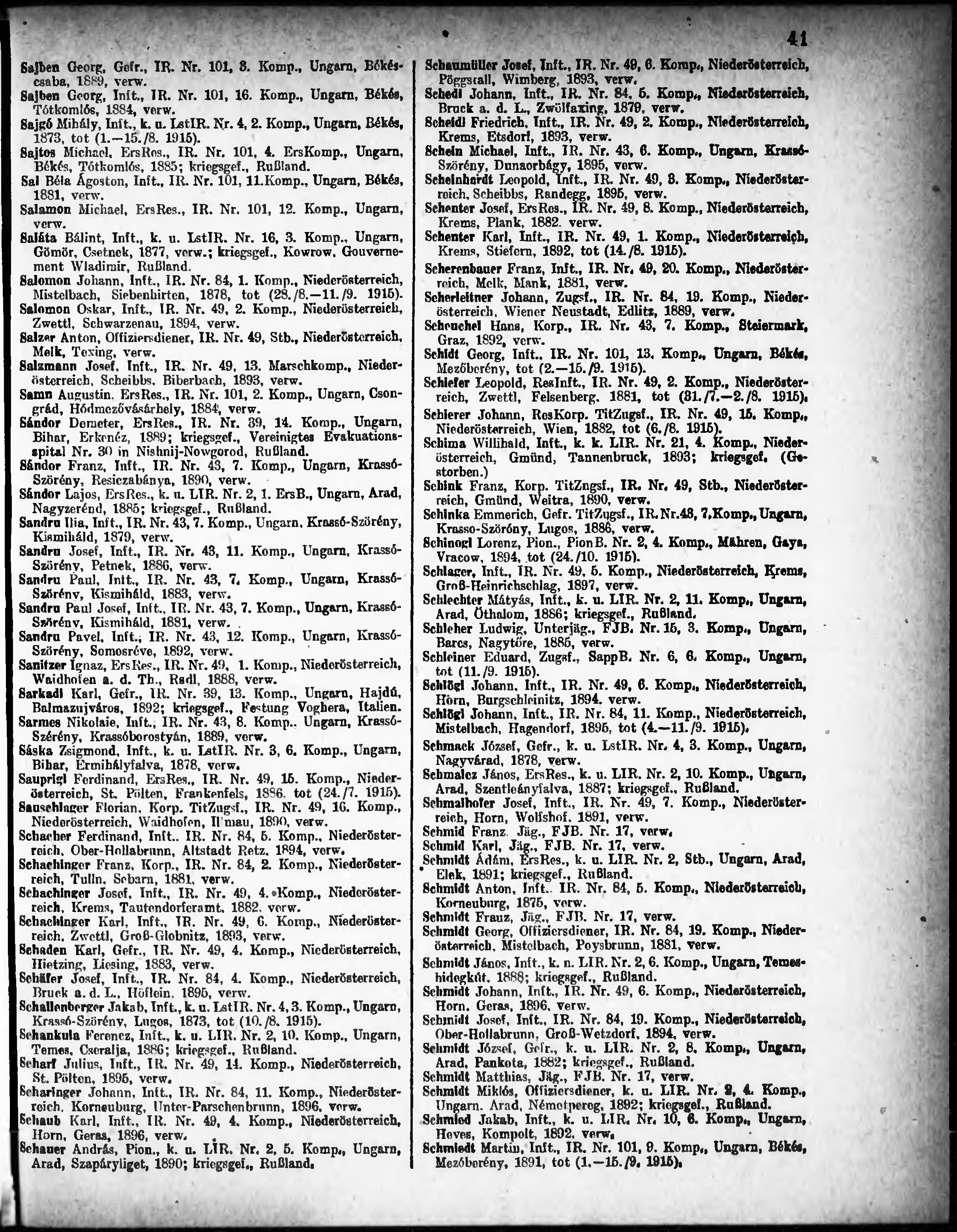 Verlustliste ausgegeben am