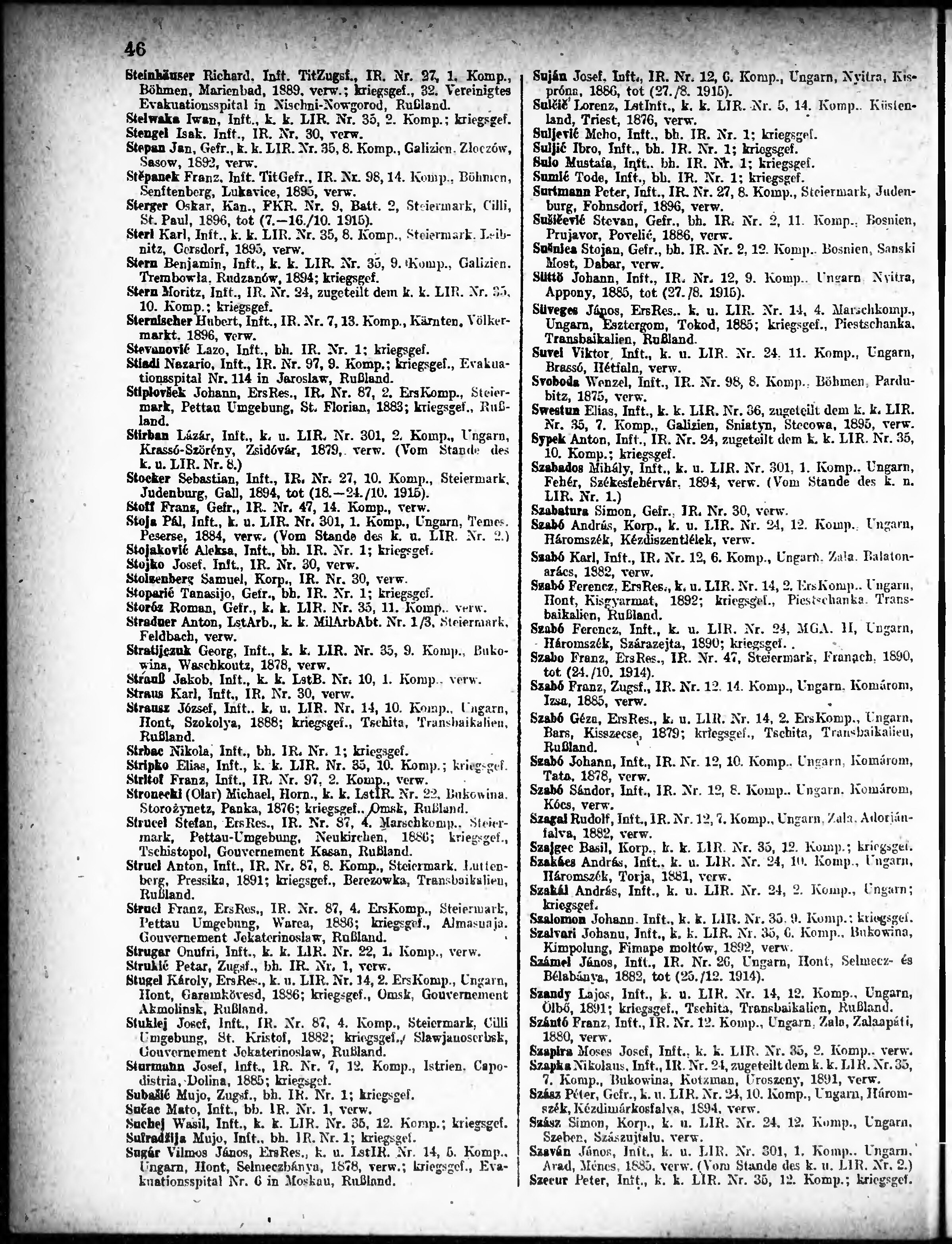 Verlustliste ausgegeben am