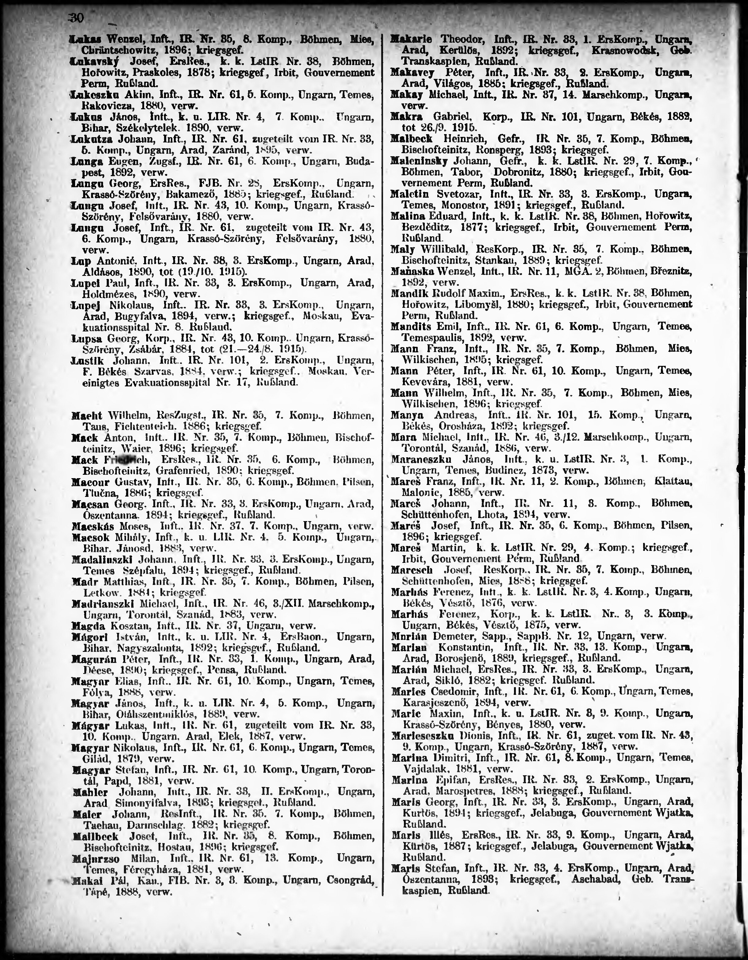 Verlustliste ausgegeben am