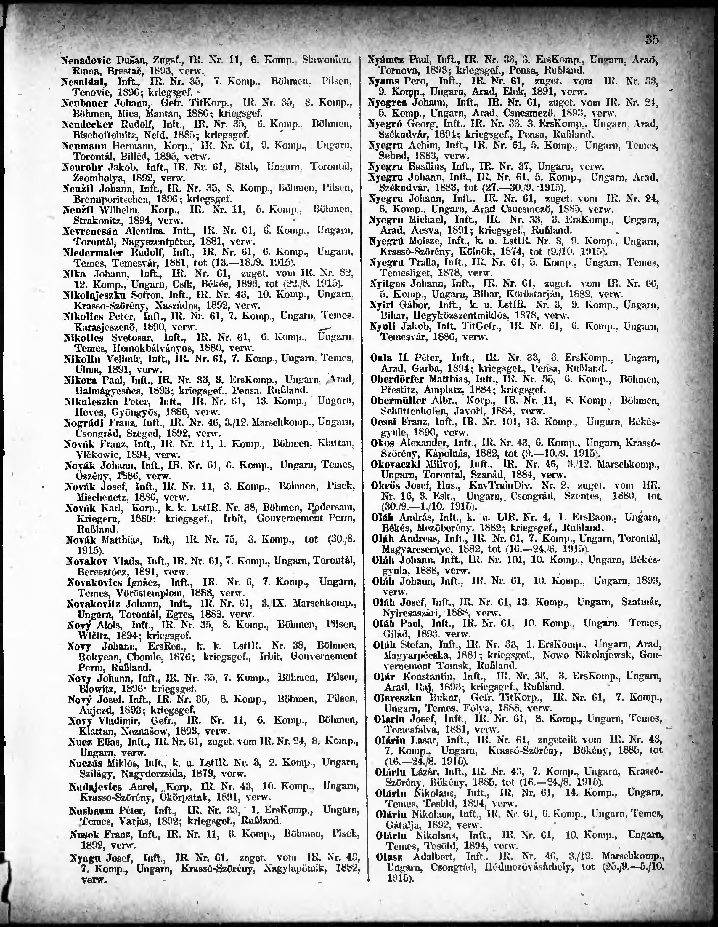 Verlustliste ausgegeben am