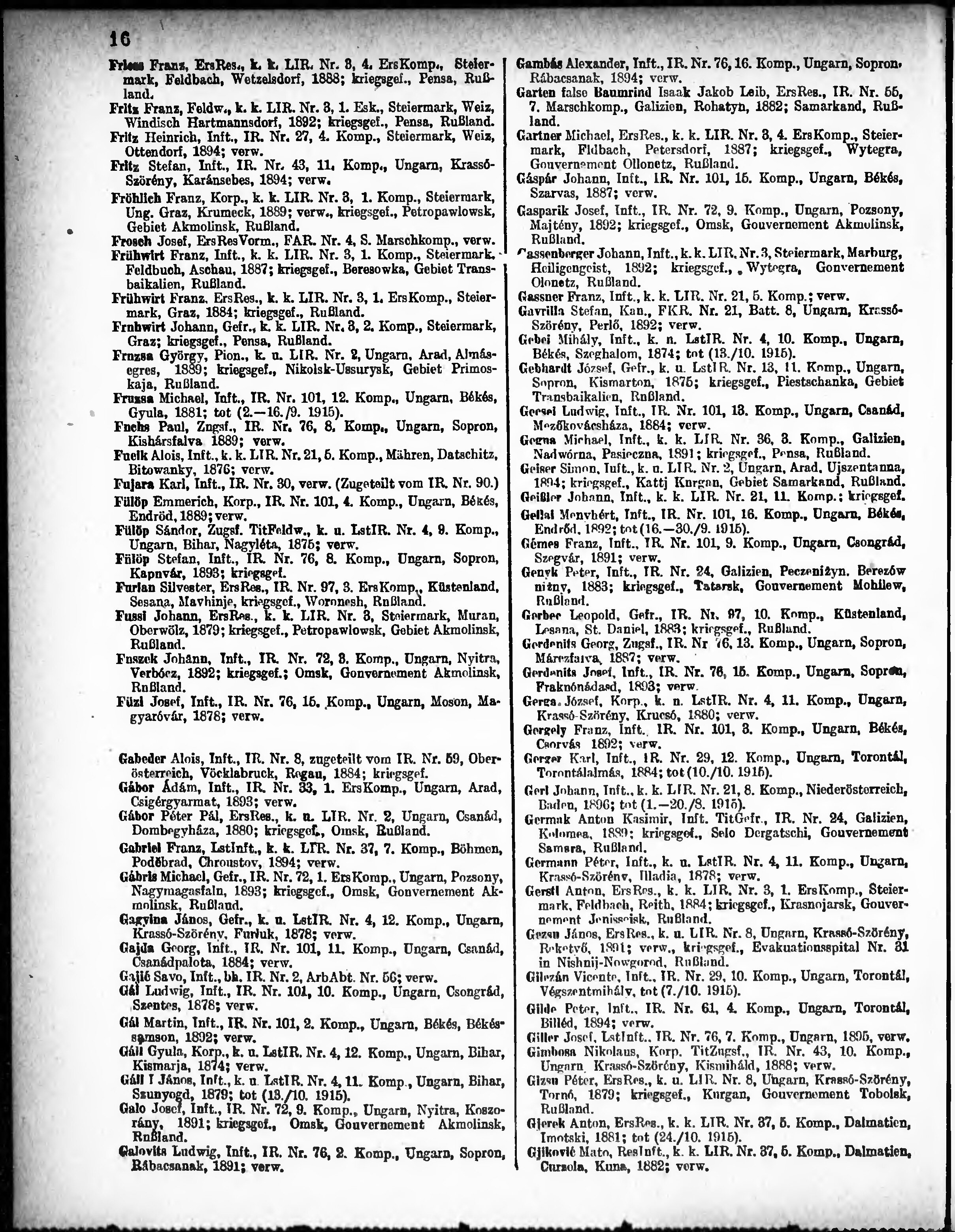 Verlustliste ausgegeben am