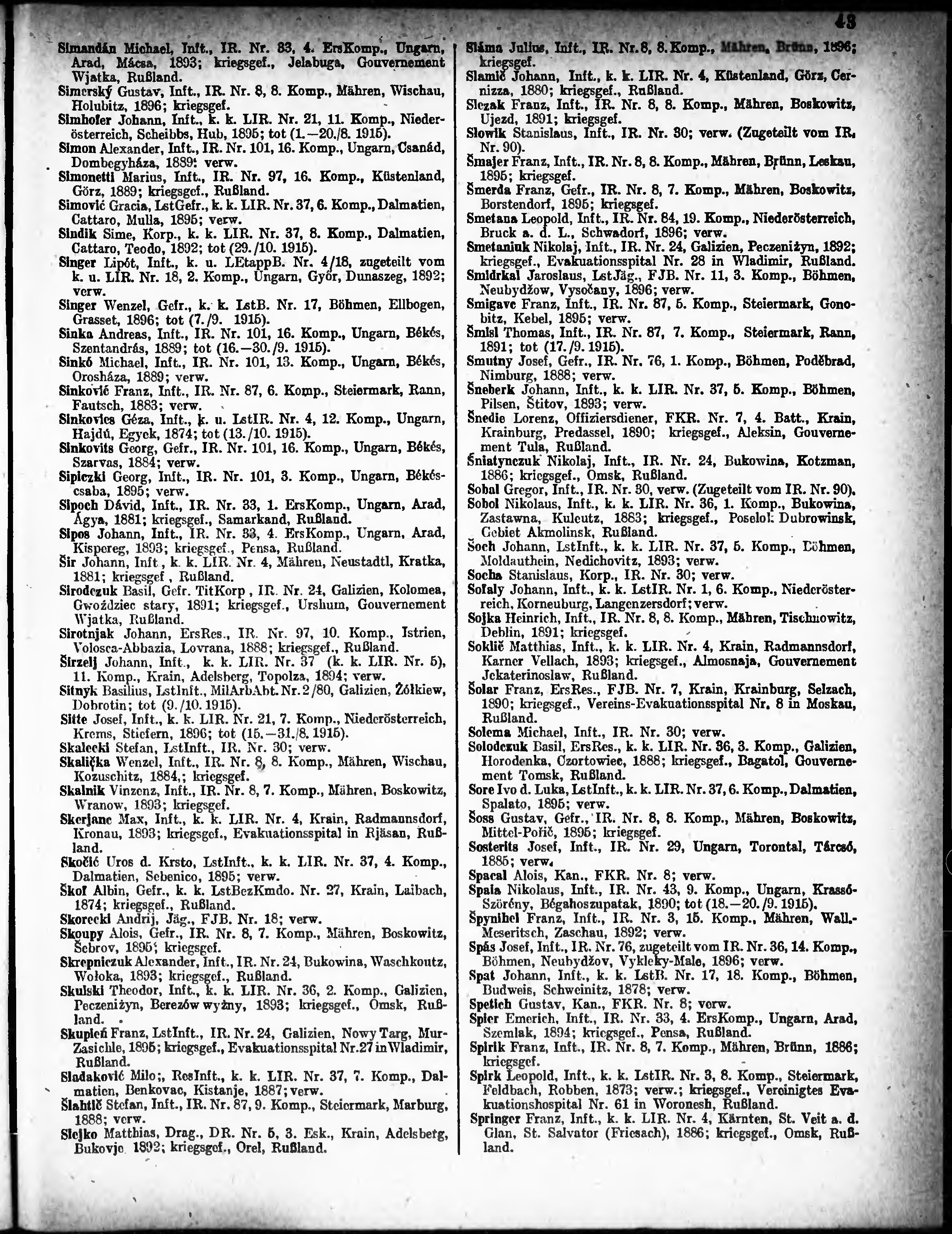 Verlustliste ausgegeben am