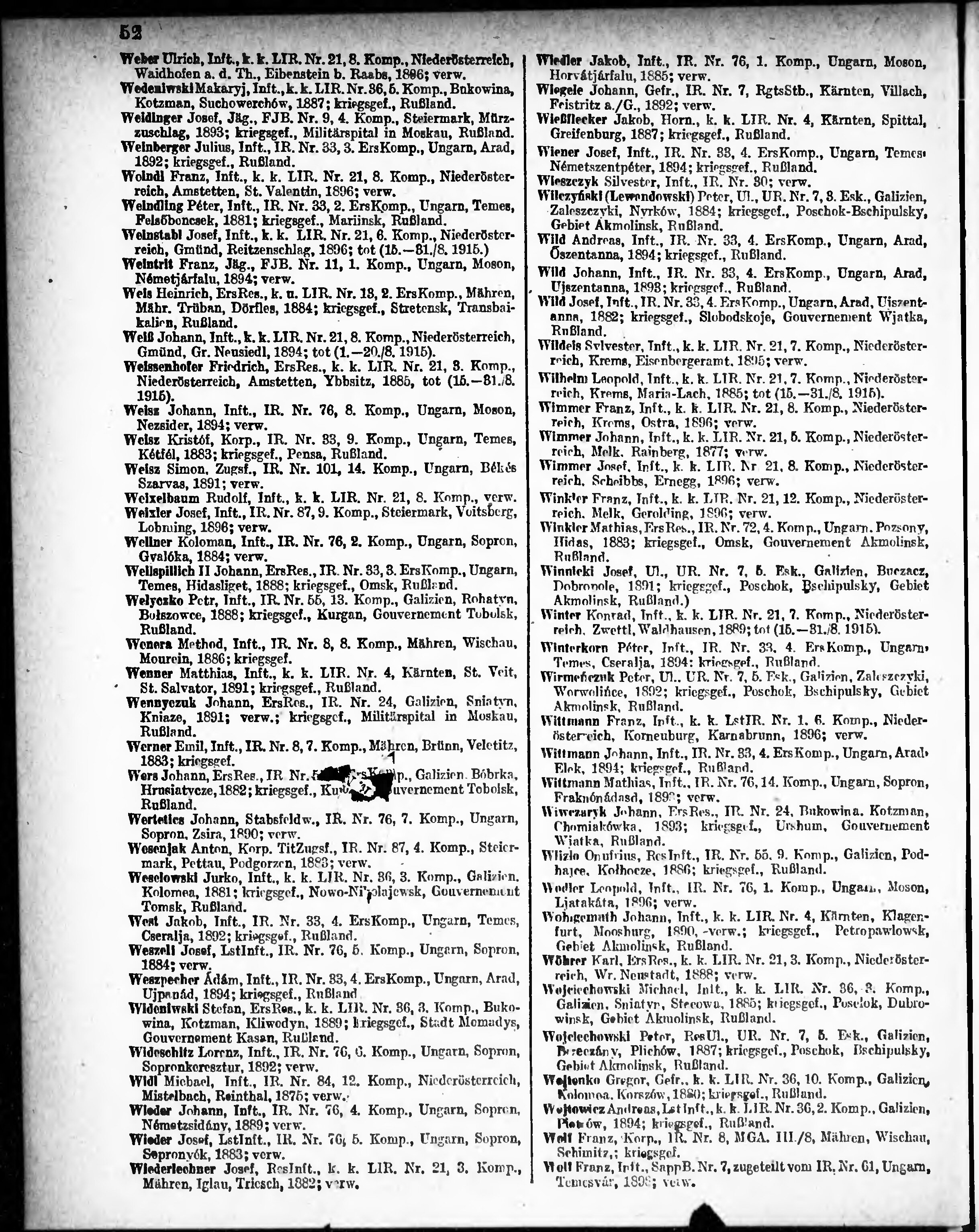 Verlustliste ausgegeben am