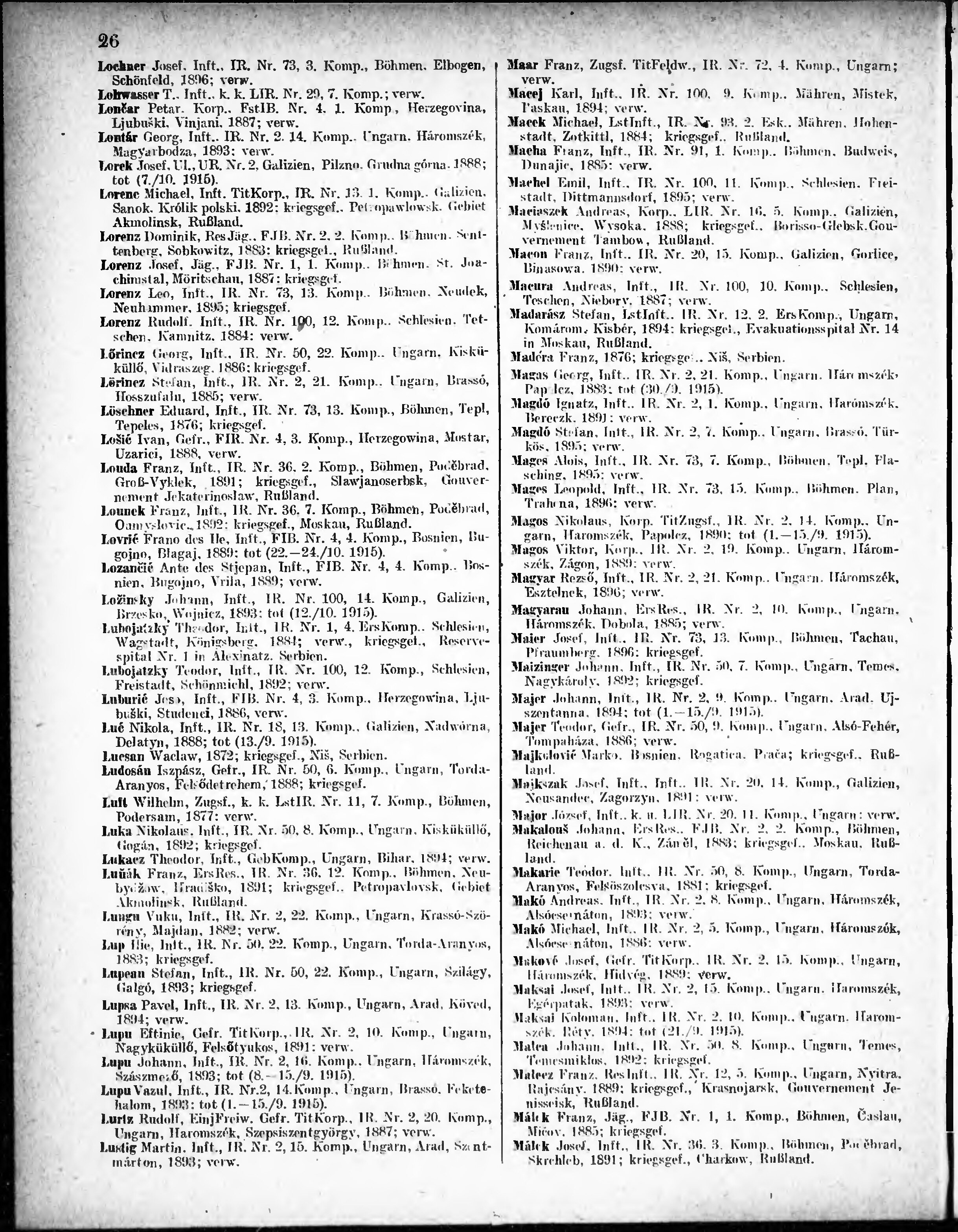 Verlustliste ausgegeben am
