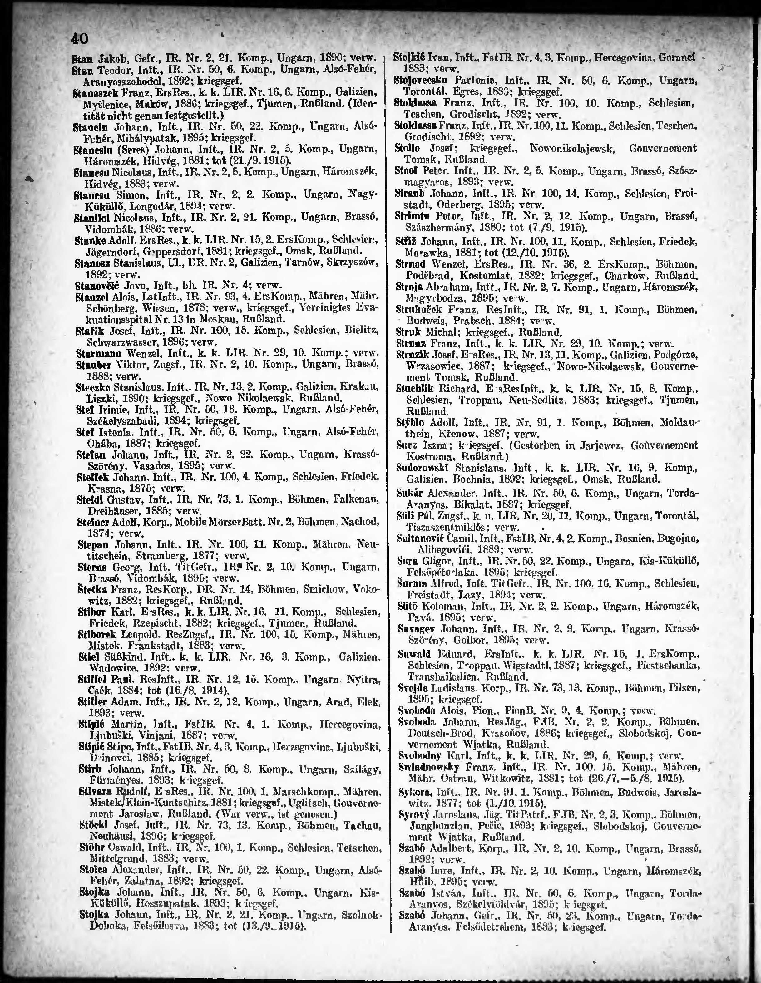 Verlustliste ausgegeben am