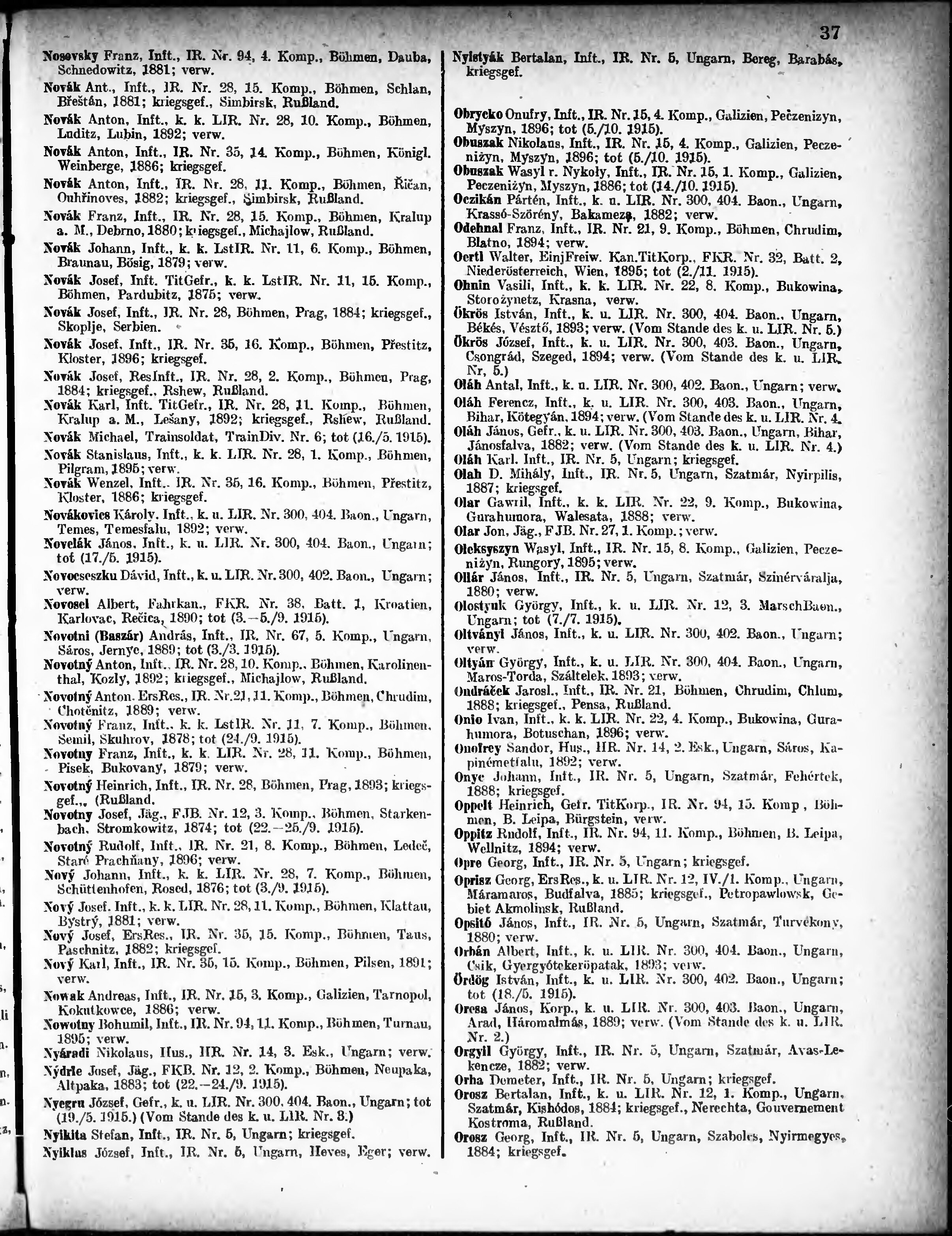 Verlustliste ausgegeben am