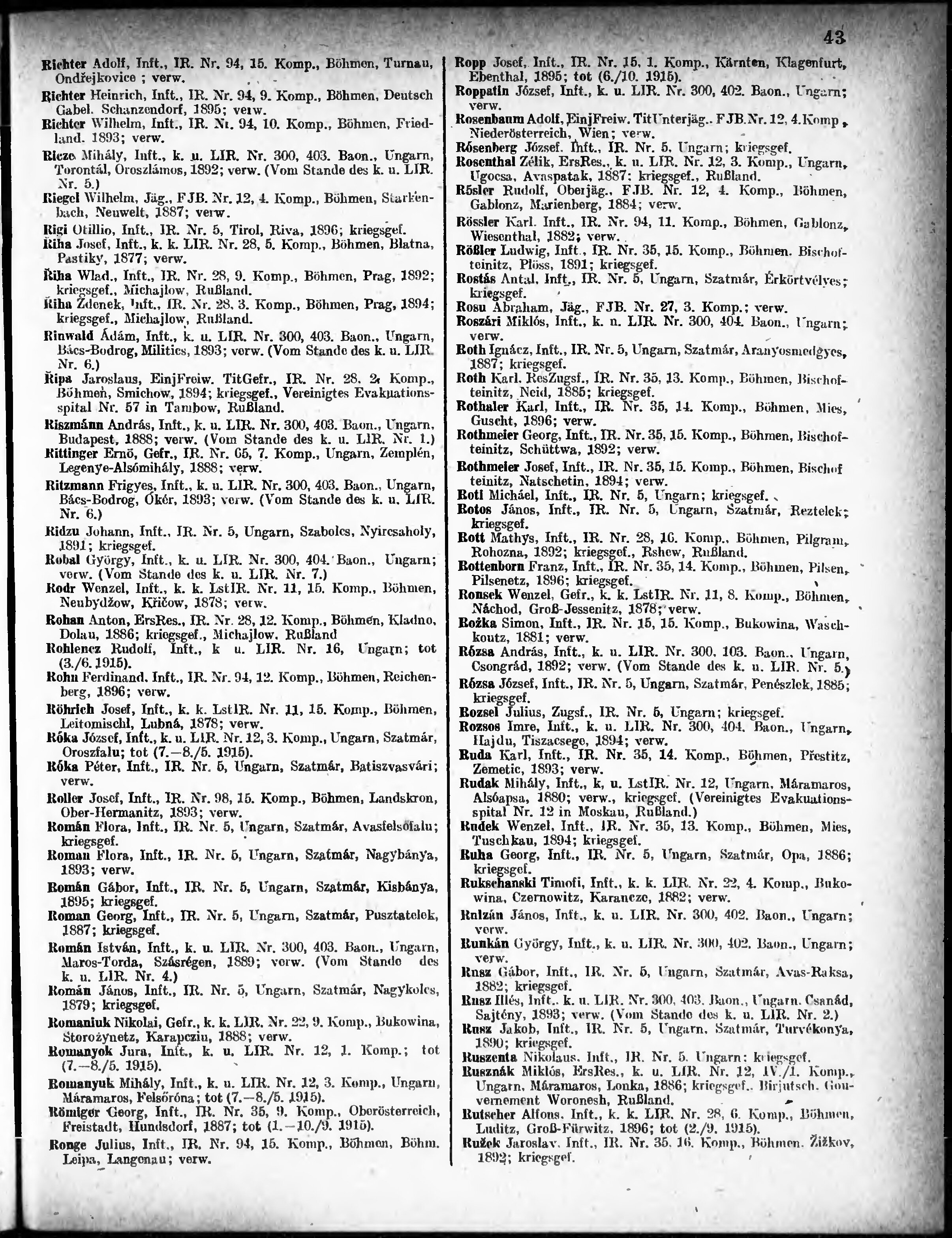 Verlustliste ausgegeben am