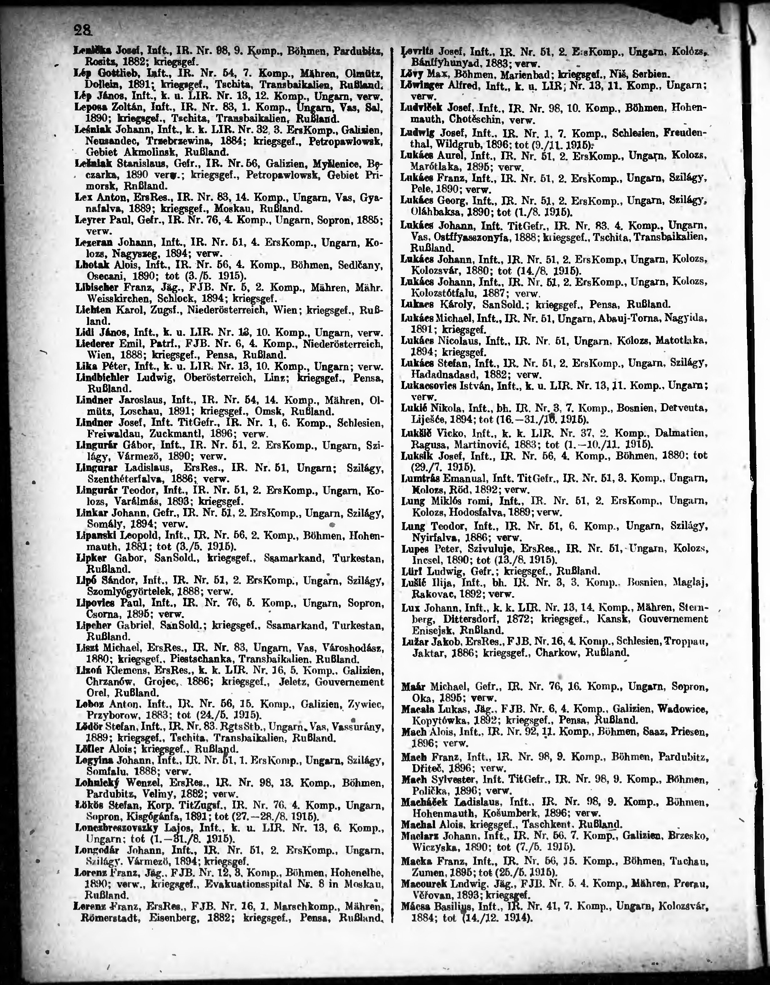 Verlustliste ausgegeben am