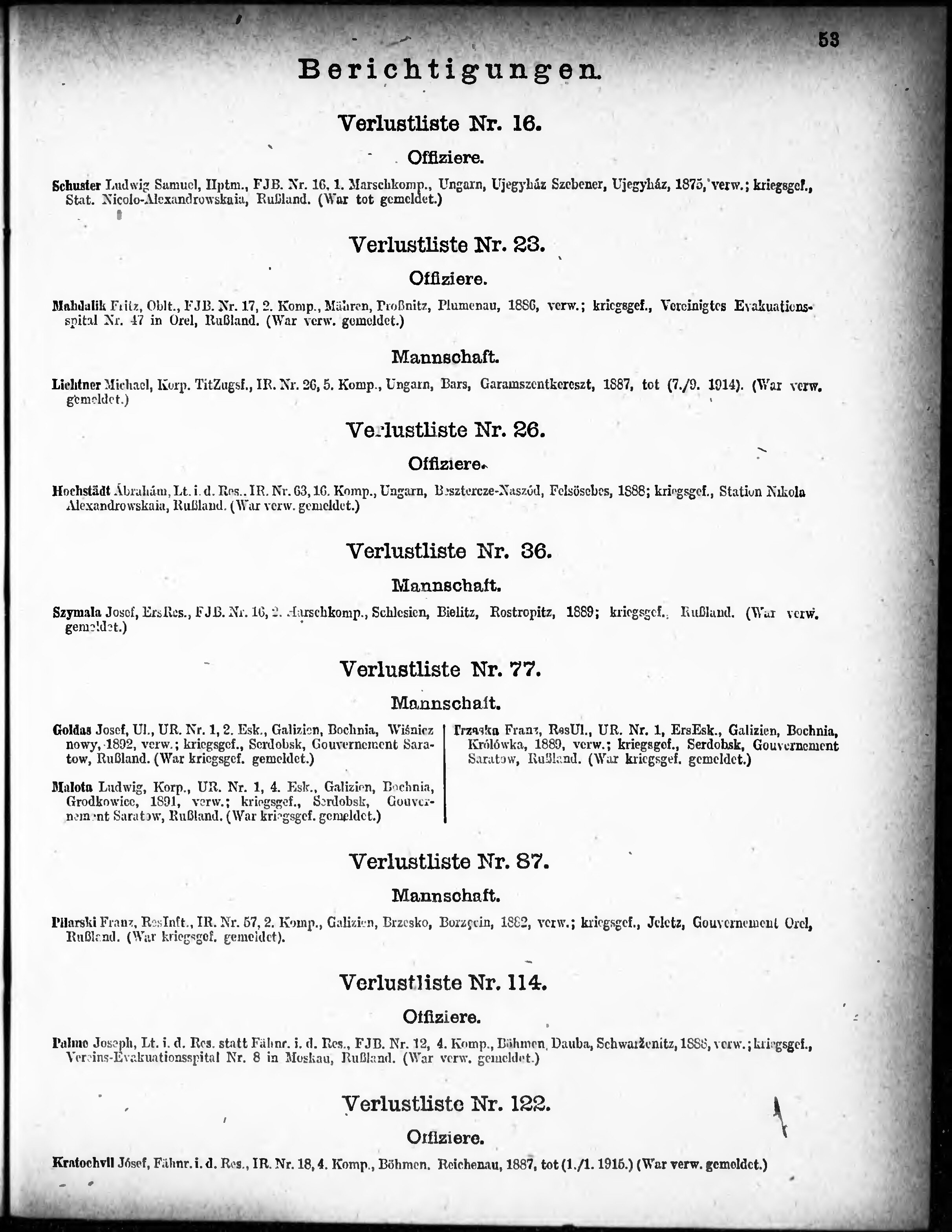 Verlustliste ausgegeben am