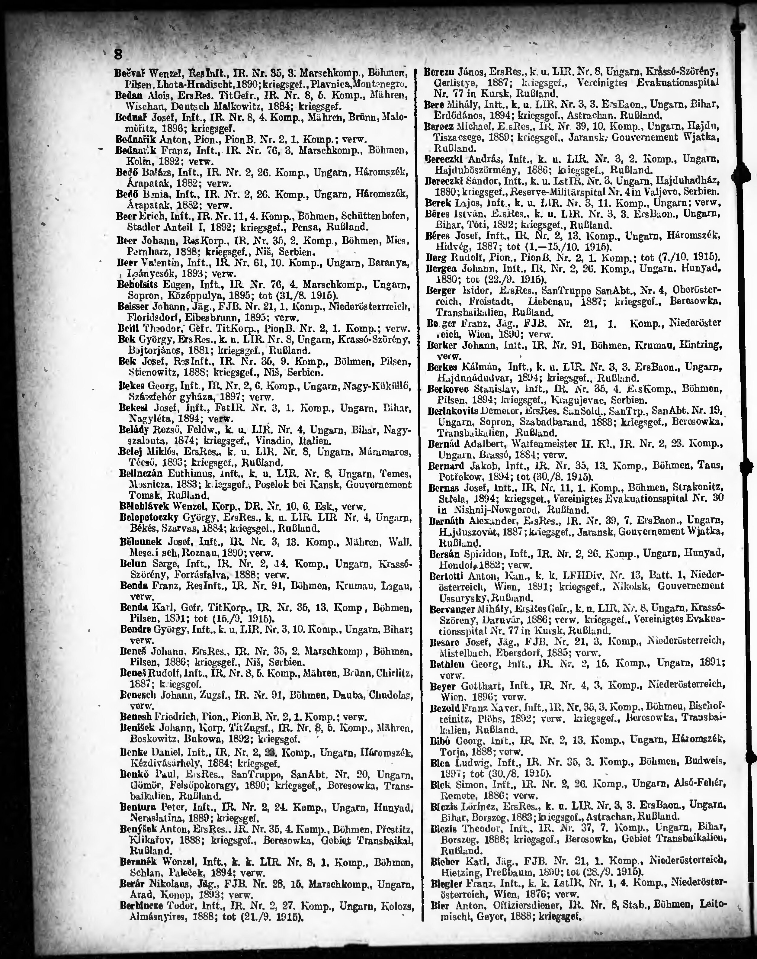 Verlustliste ausgegeben am