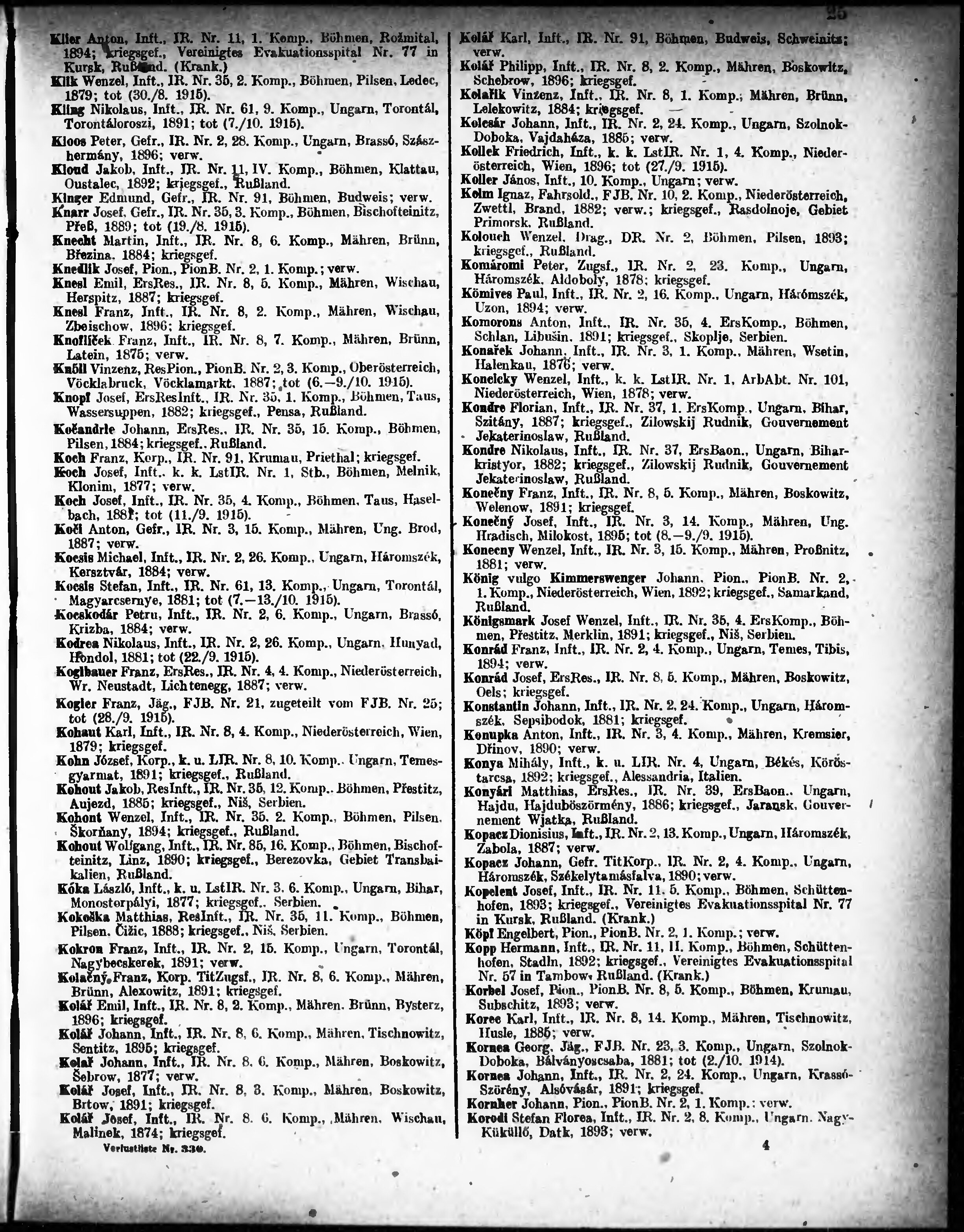 Verlustliste ausgegeben am