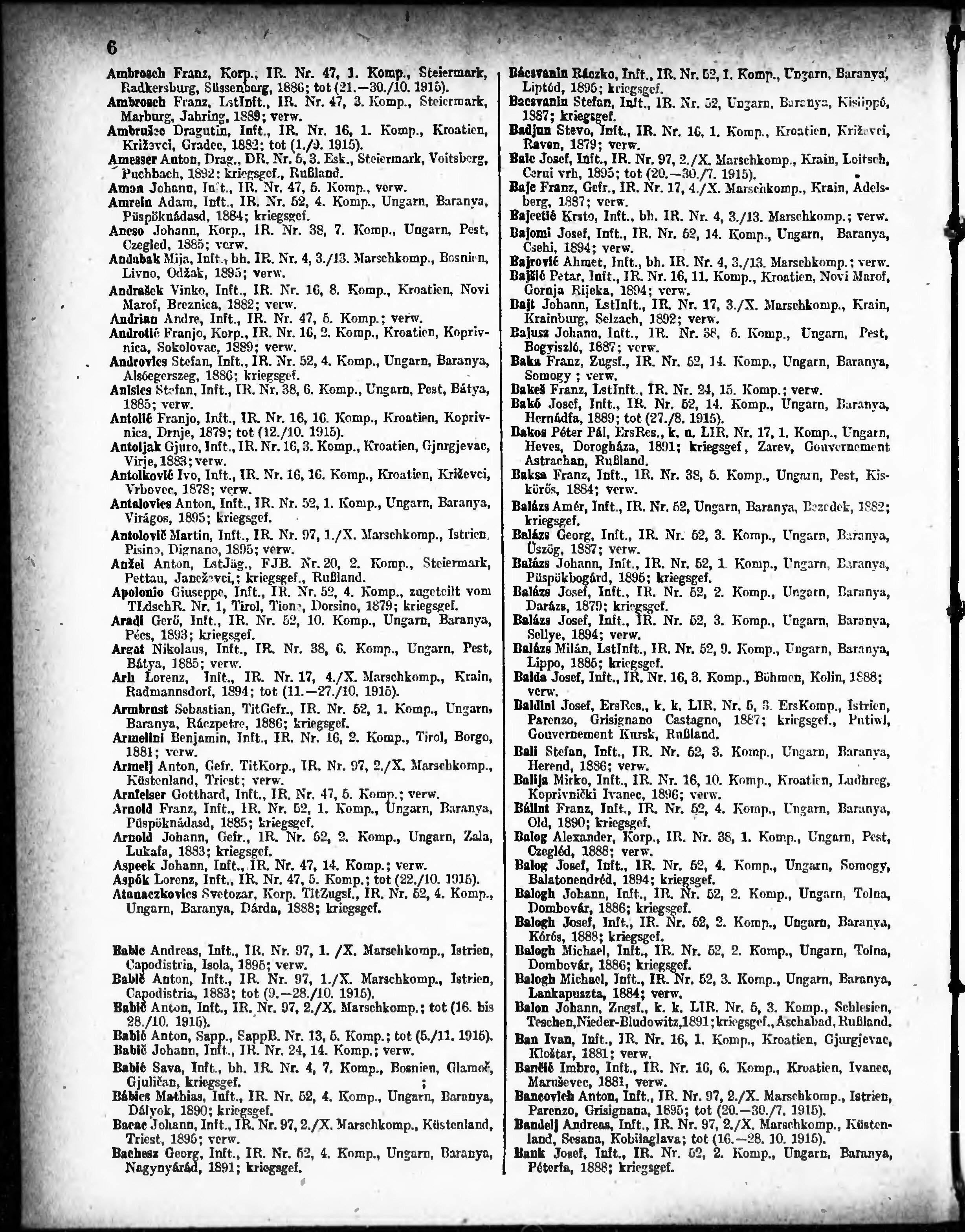 Verlustliste ausgegeben am