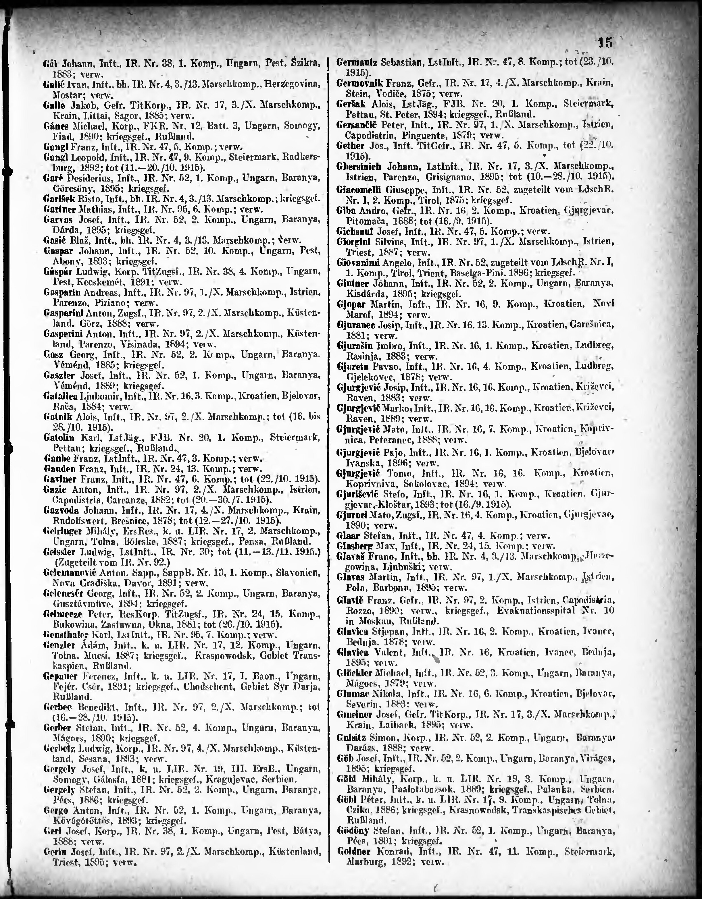 Verlustliste ausgegeben am