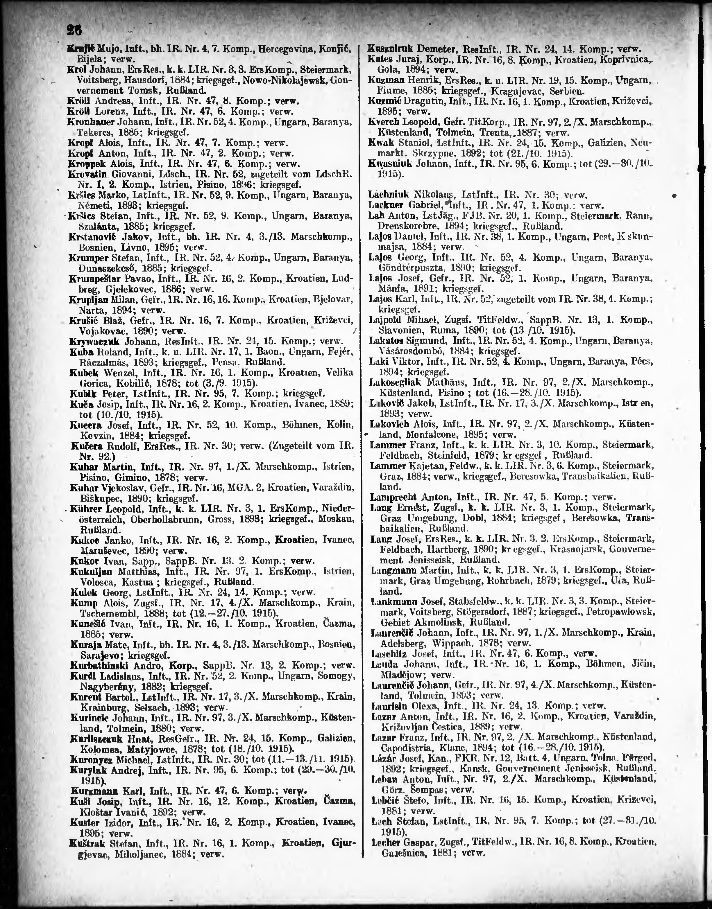 Verlustliste ausgegeben am