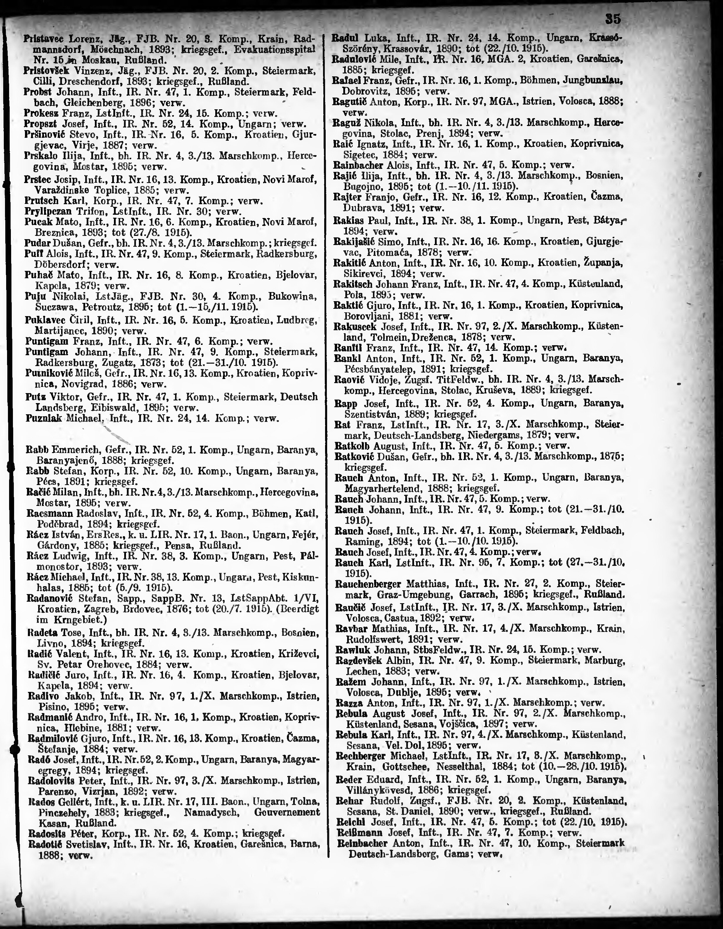 Verlustliste ausgegeben am