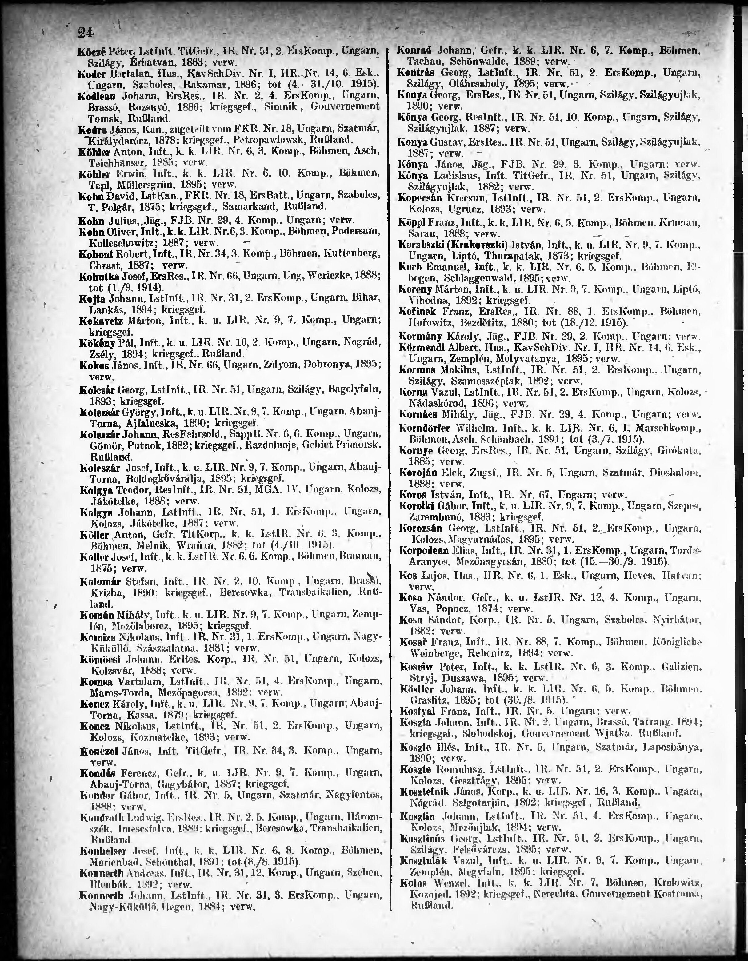 Verlustliste ausgegeben am