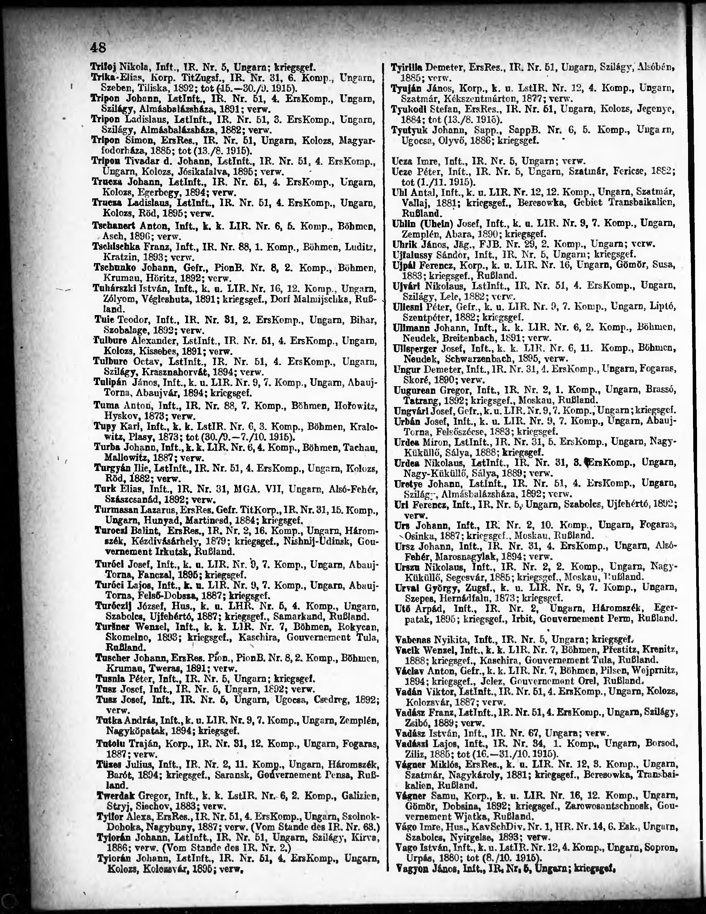 Verlustliste ausgegeben am