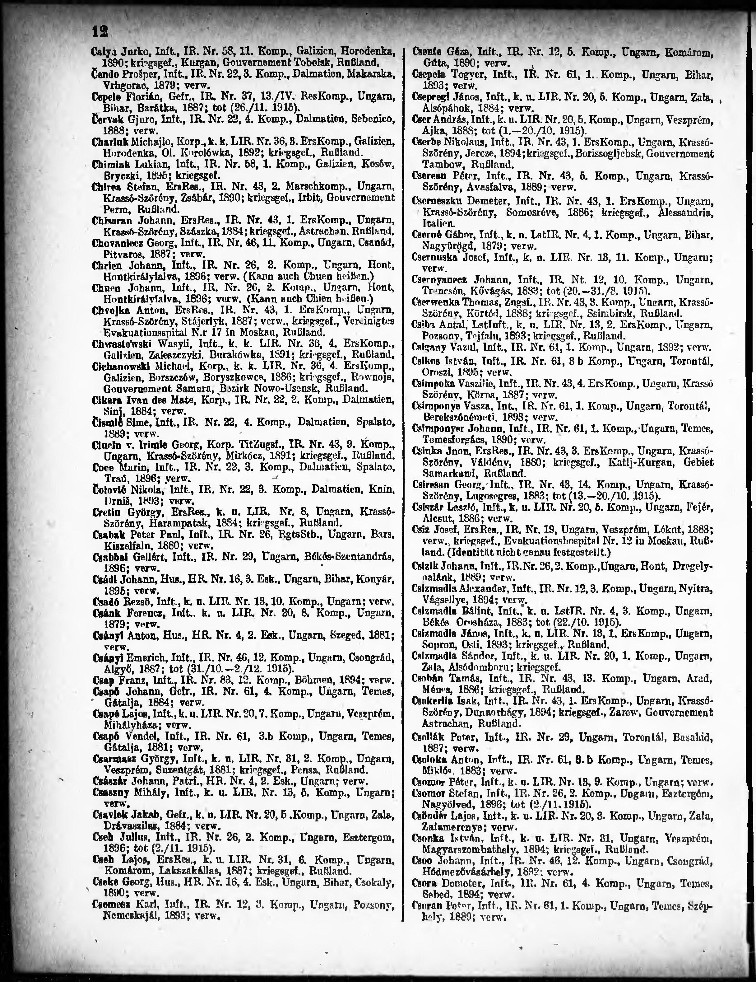 Verlustliste ausgegeben am
