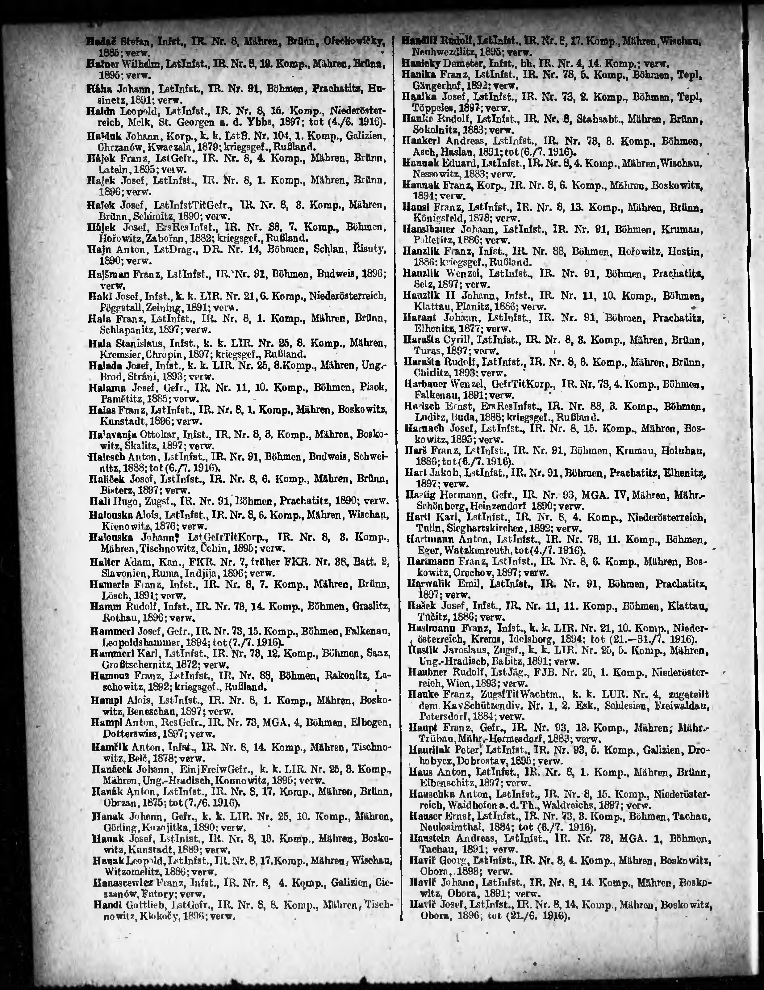 Verlustliste ausgegeben am