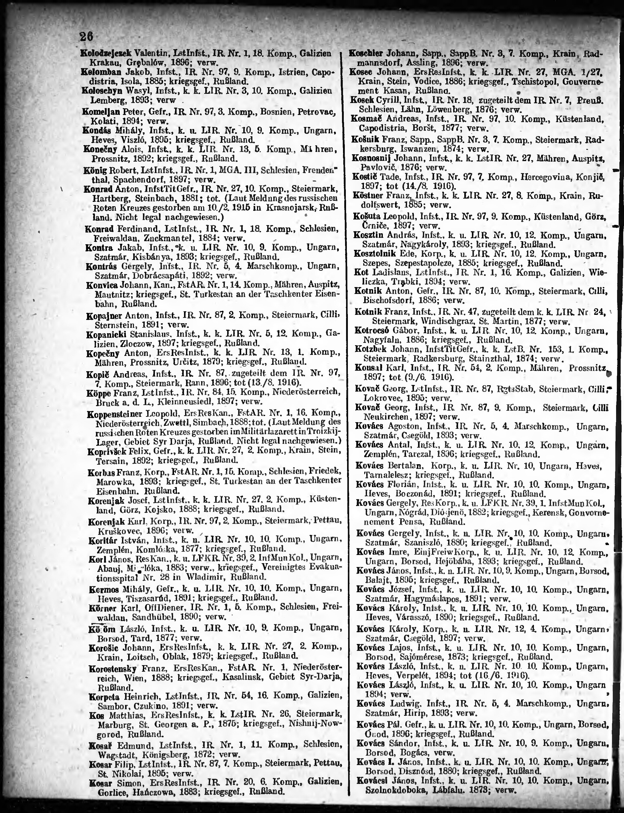 Verlustliste ausgegeben am