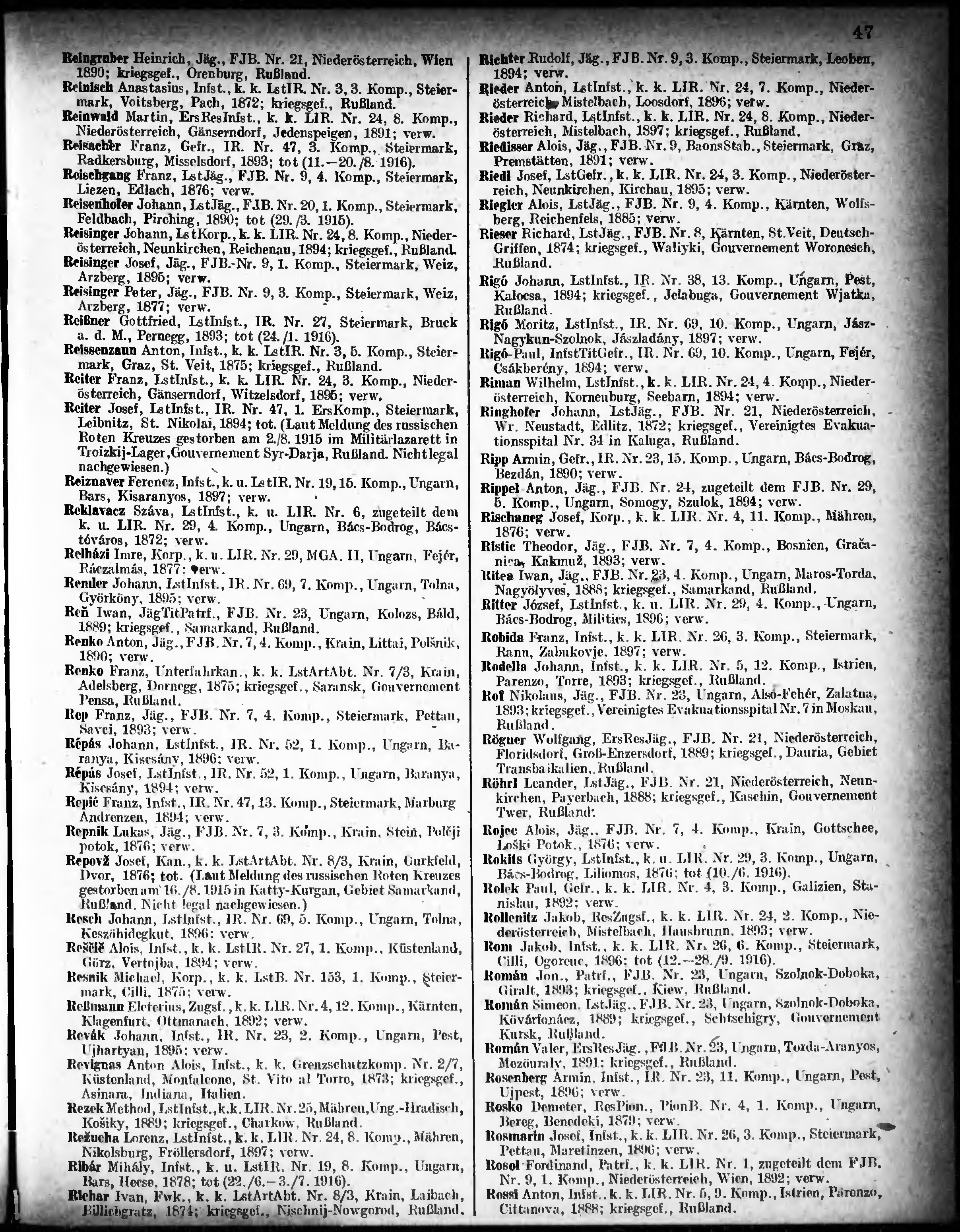 Verlustliste ausgegeben am