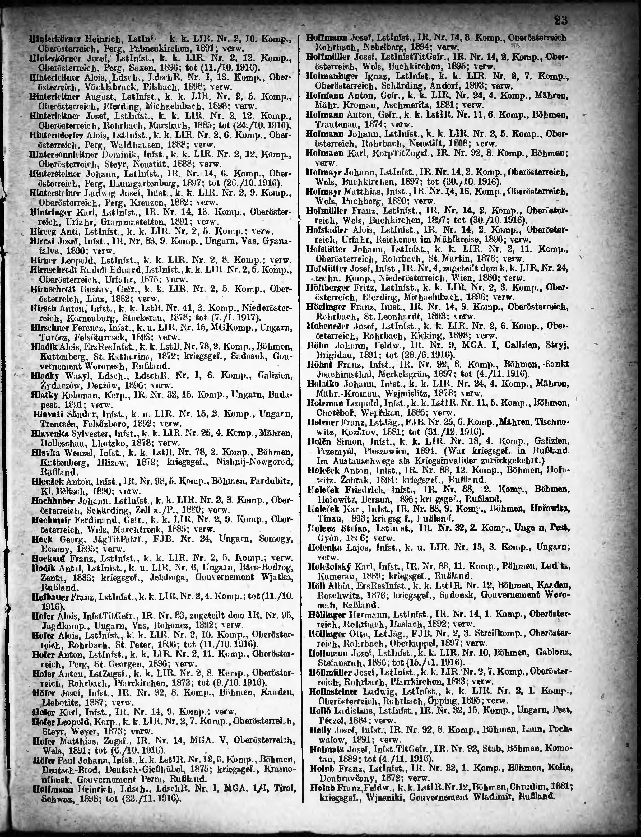Verlustliste ausgegeben am