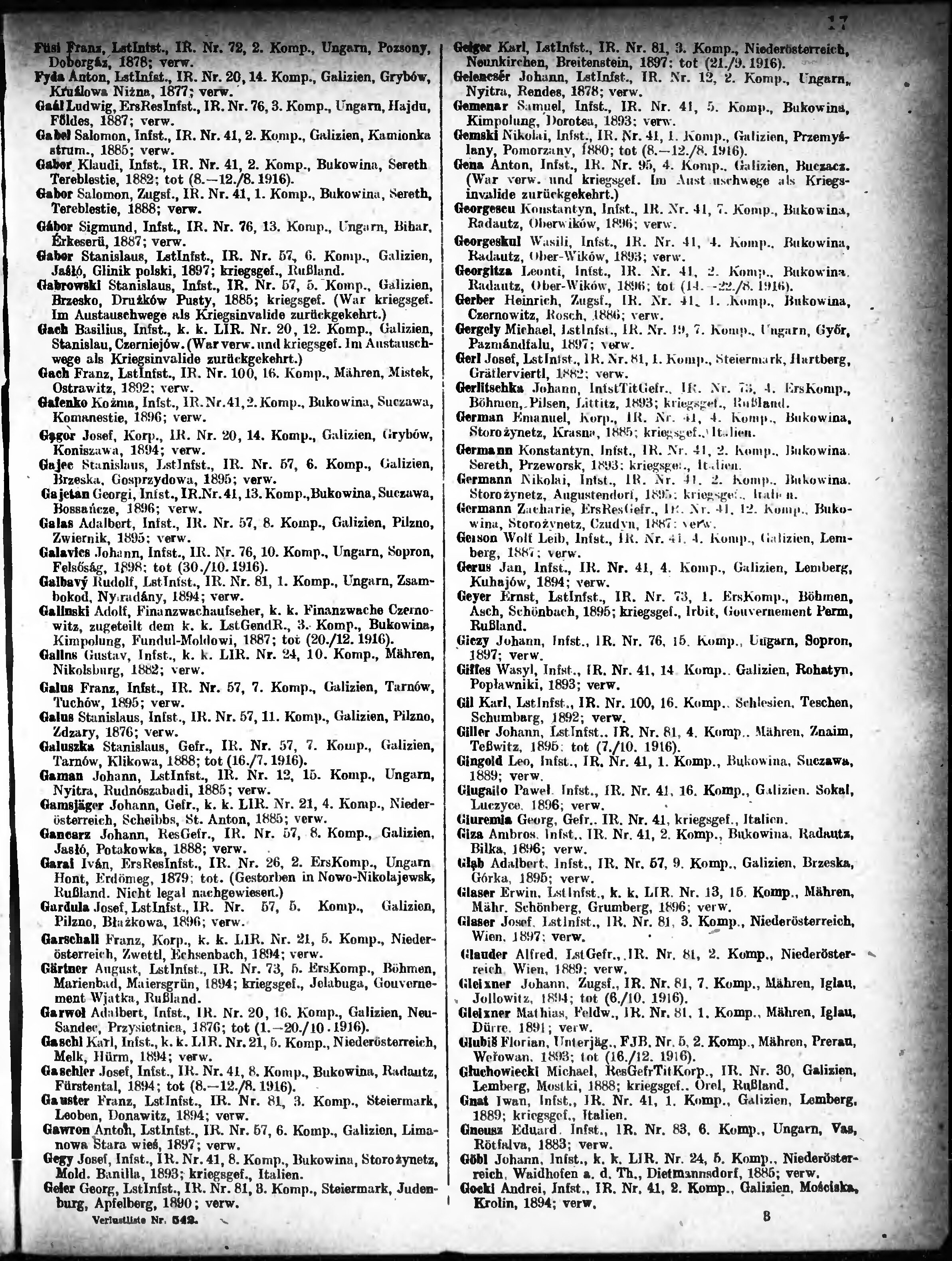 Verlustliste ausgegeben am