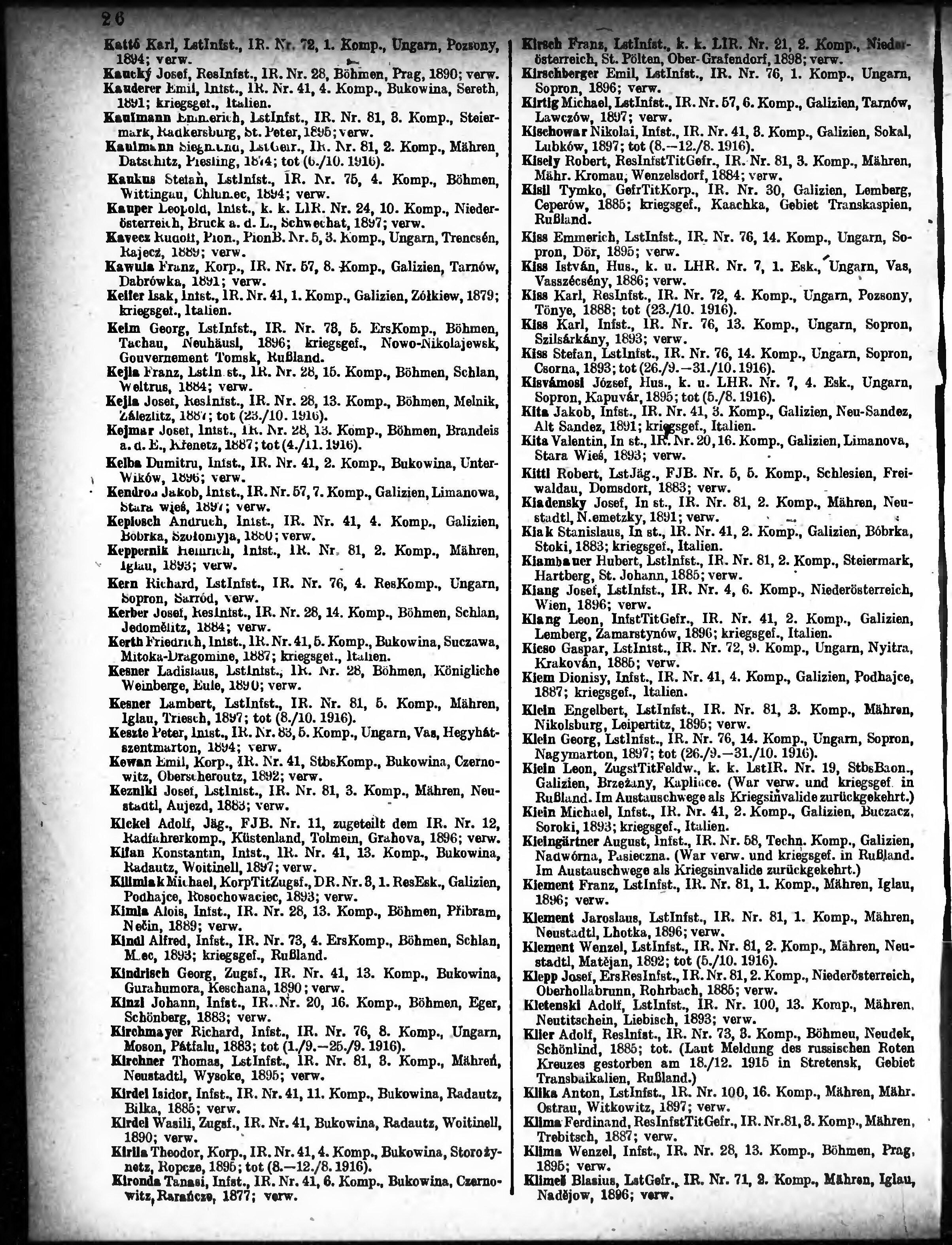 Verlustliste ausgegeben am