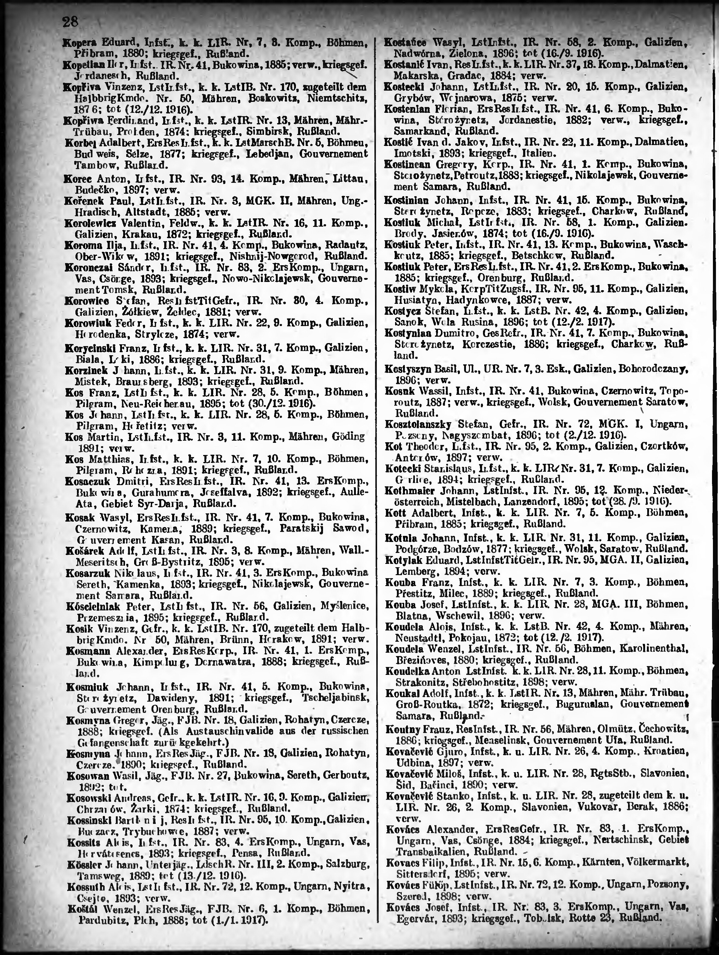 Verlustliste ausgegeben am