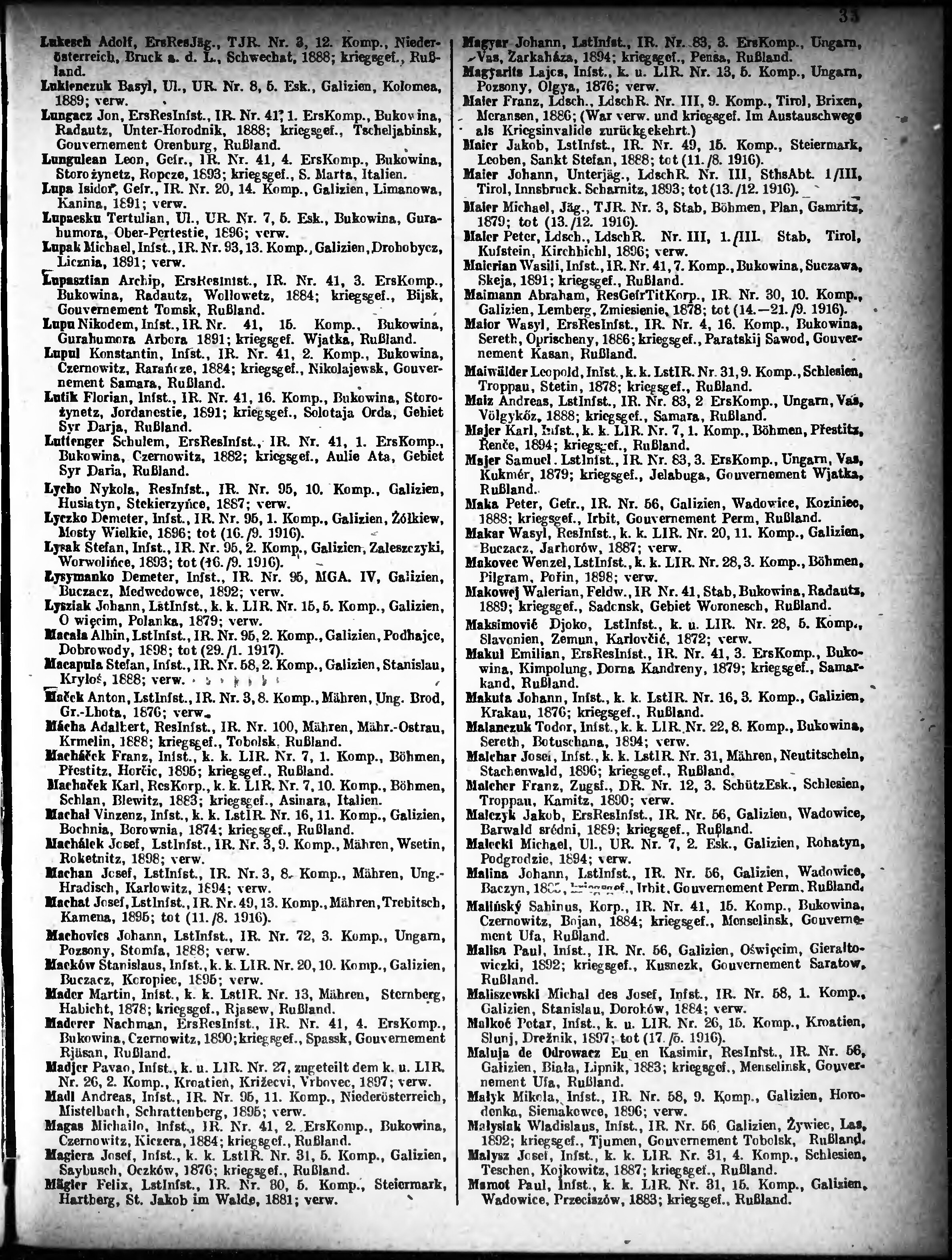 Verlustliste ausgegeben am