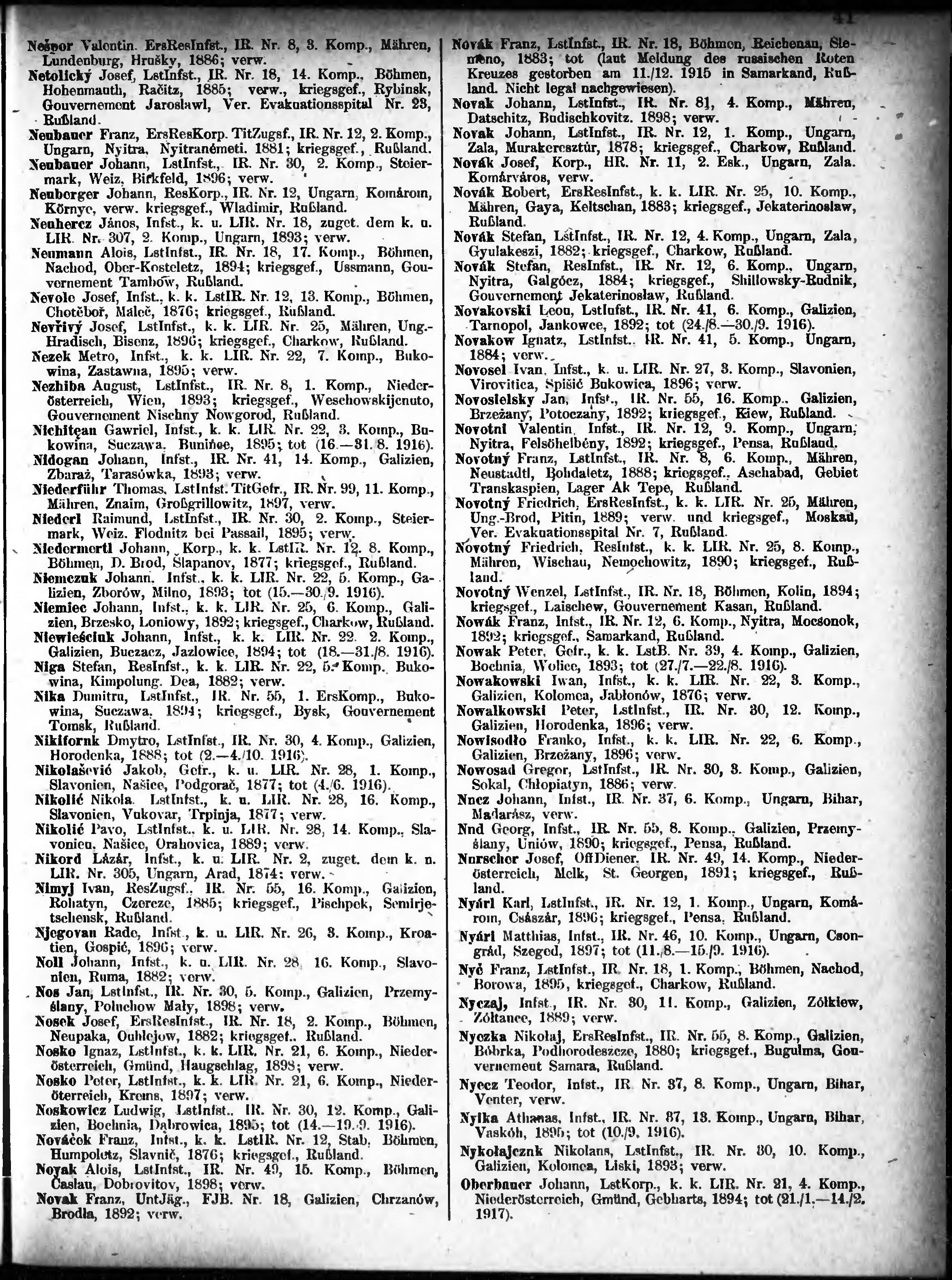 Verlustliste ausgegeben am