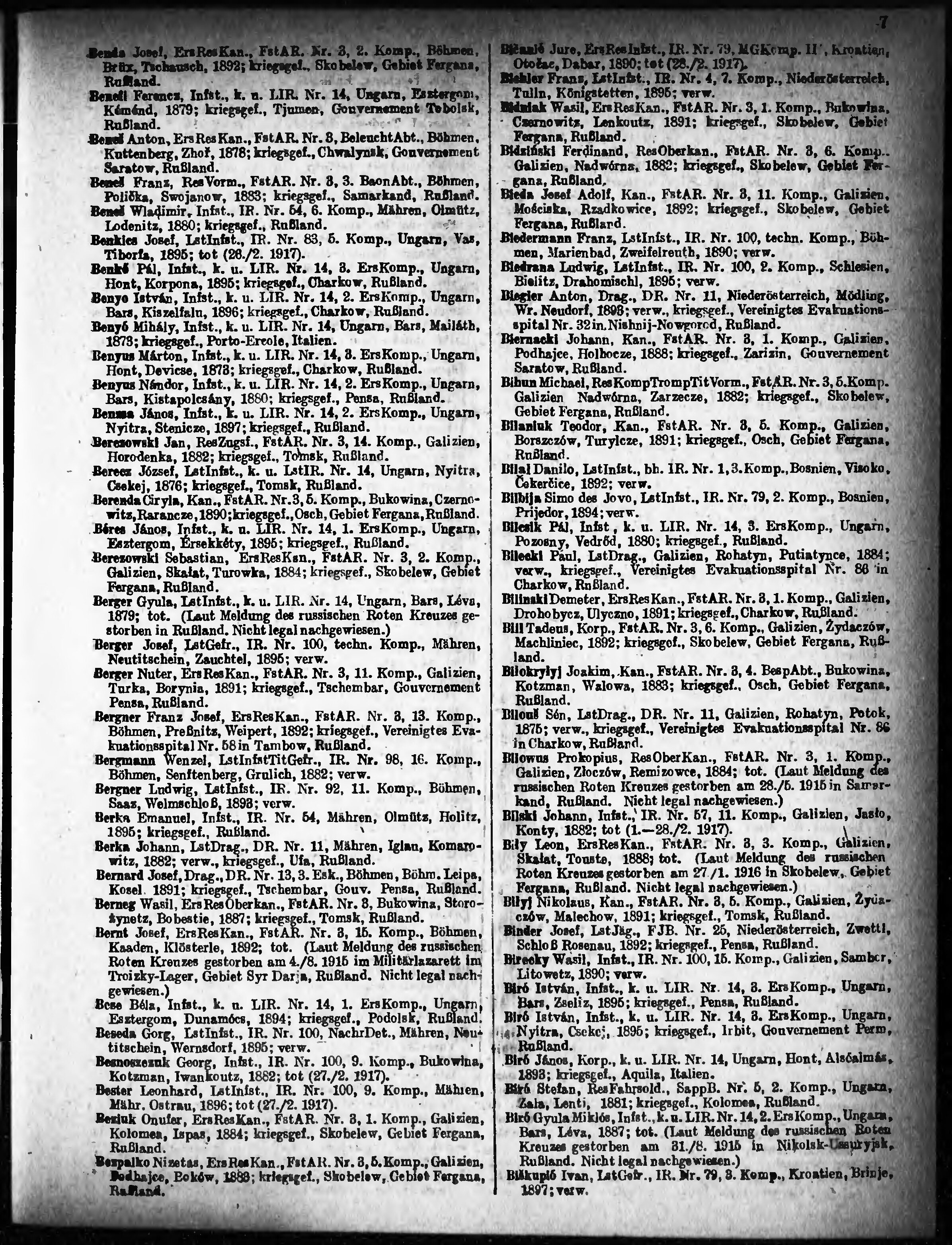 Verlustliste ausgegeben am