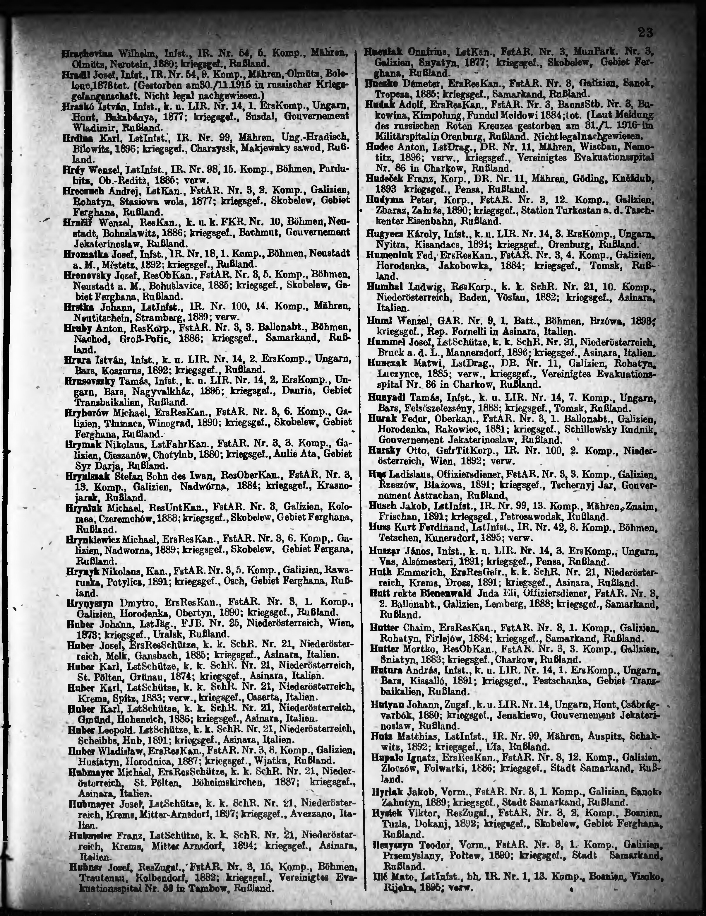 Verlustliste ausgegeben am