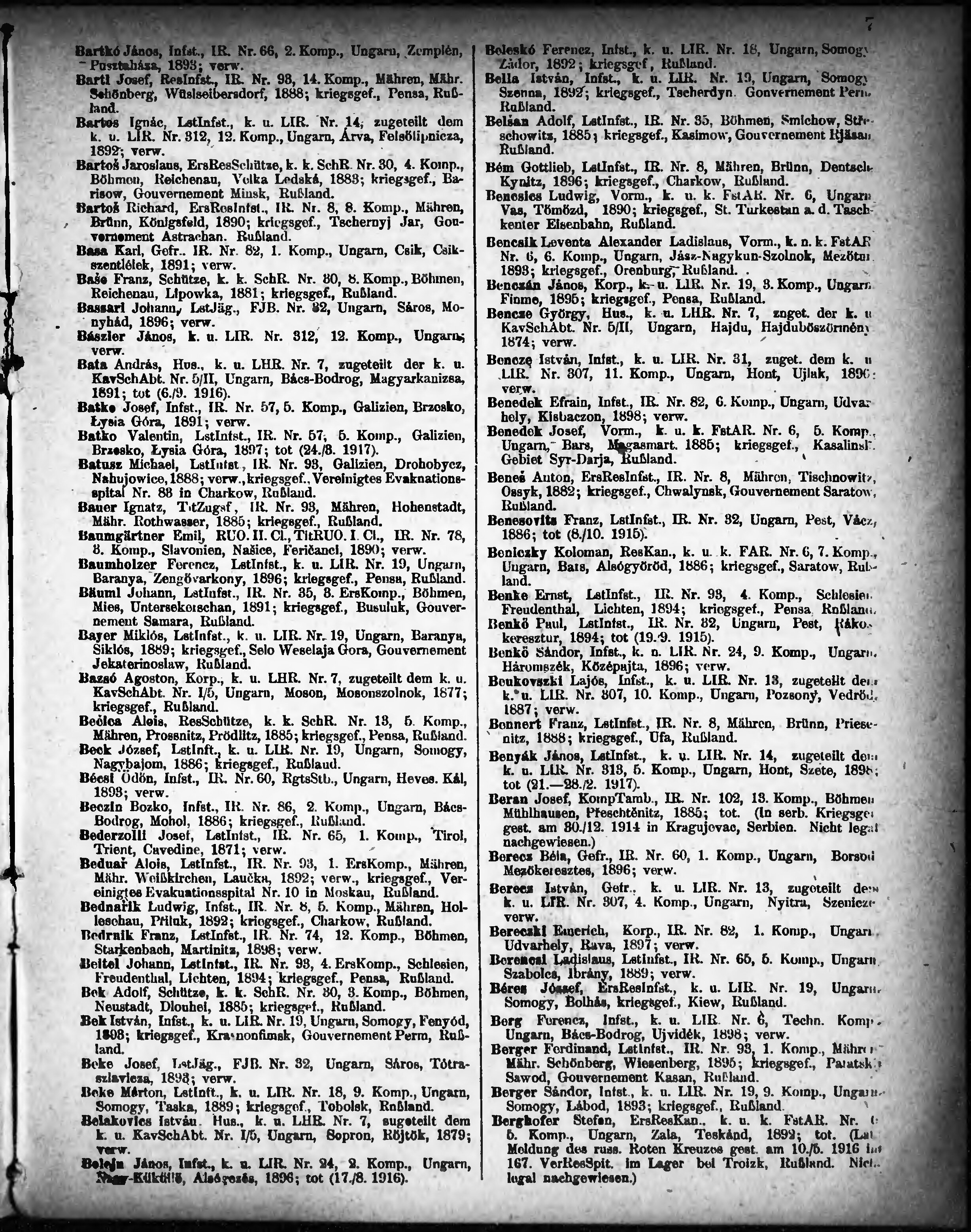 Verlustliste ausgegeben am