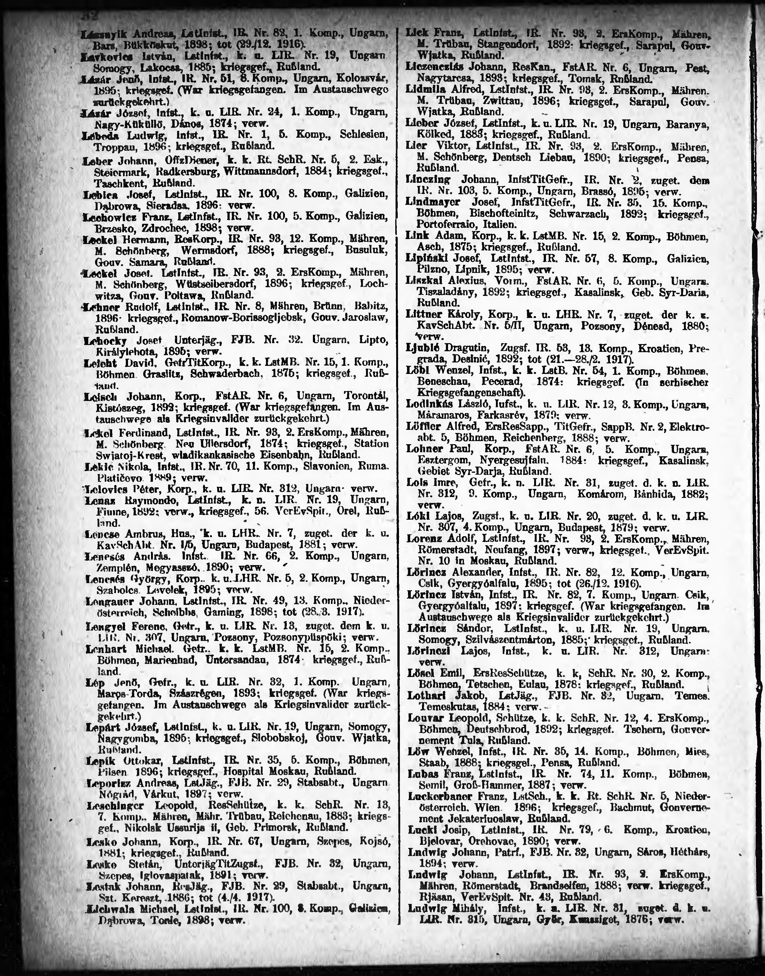 Verlustliste ausgegeben am
